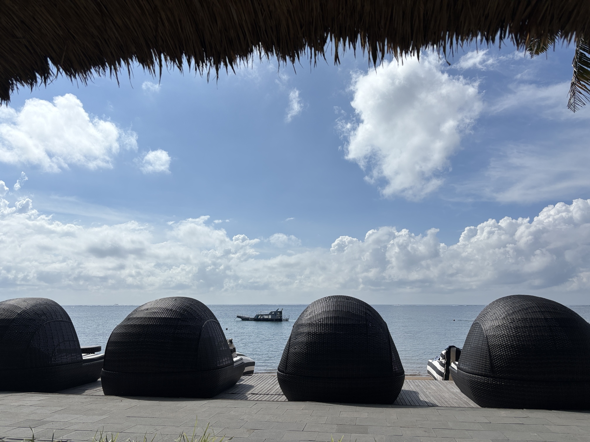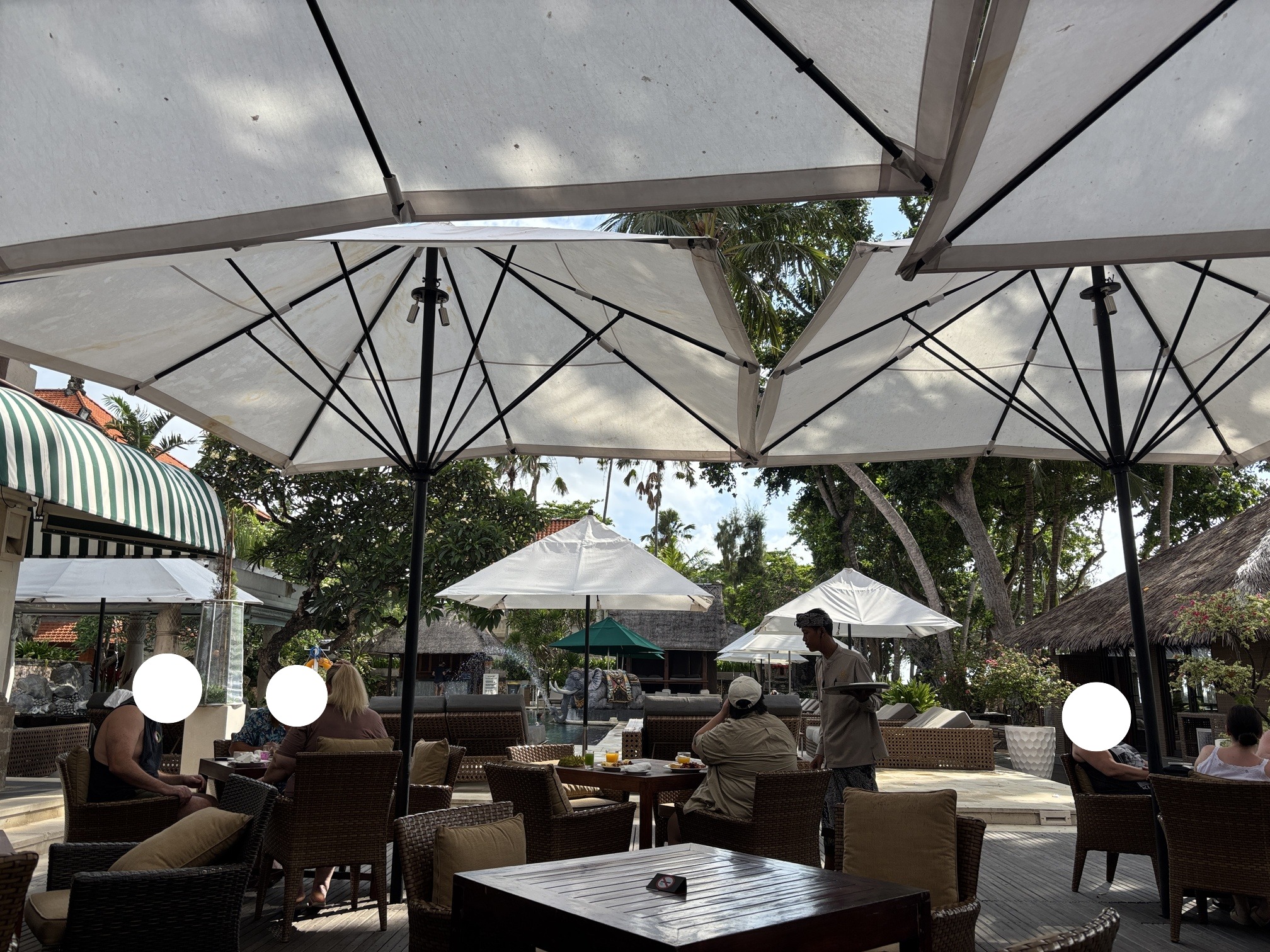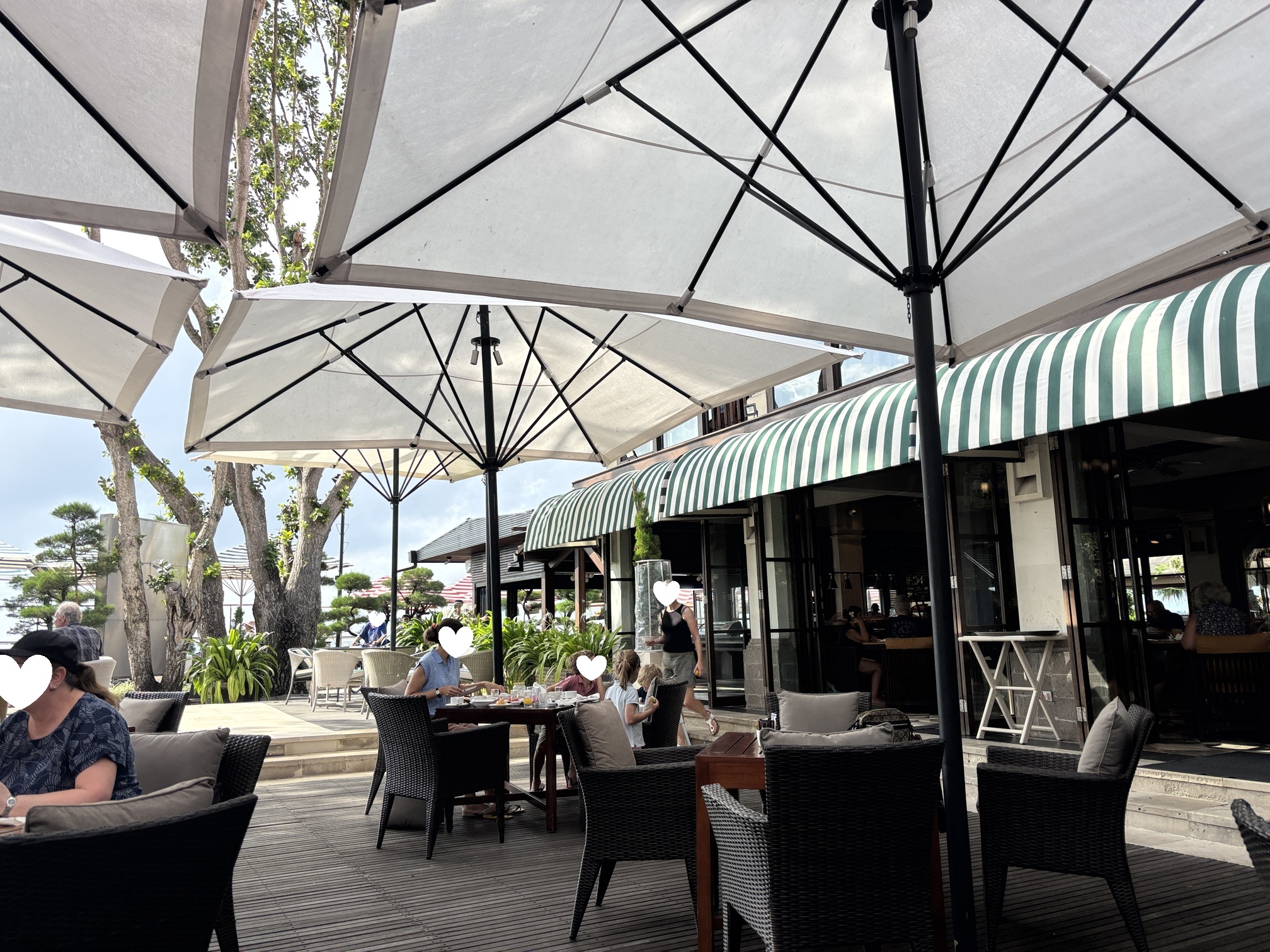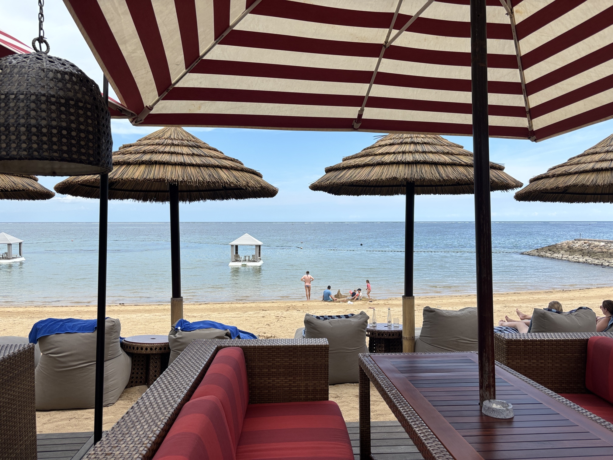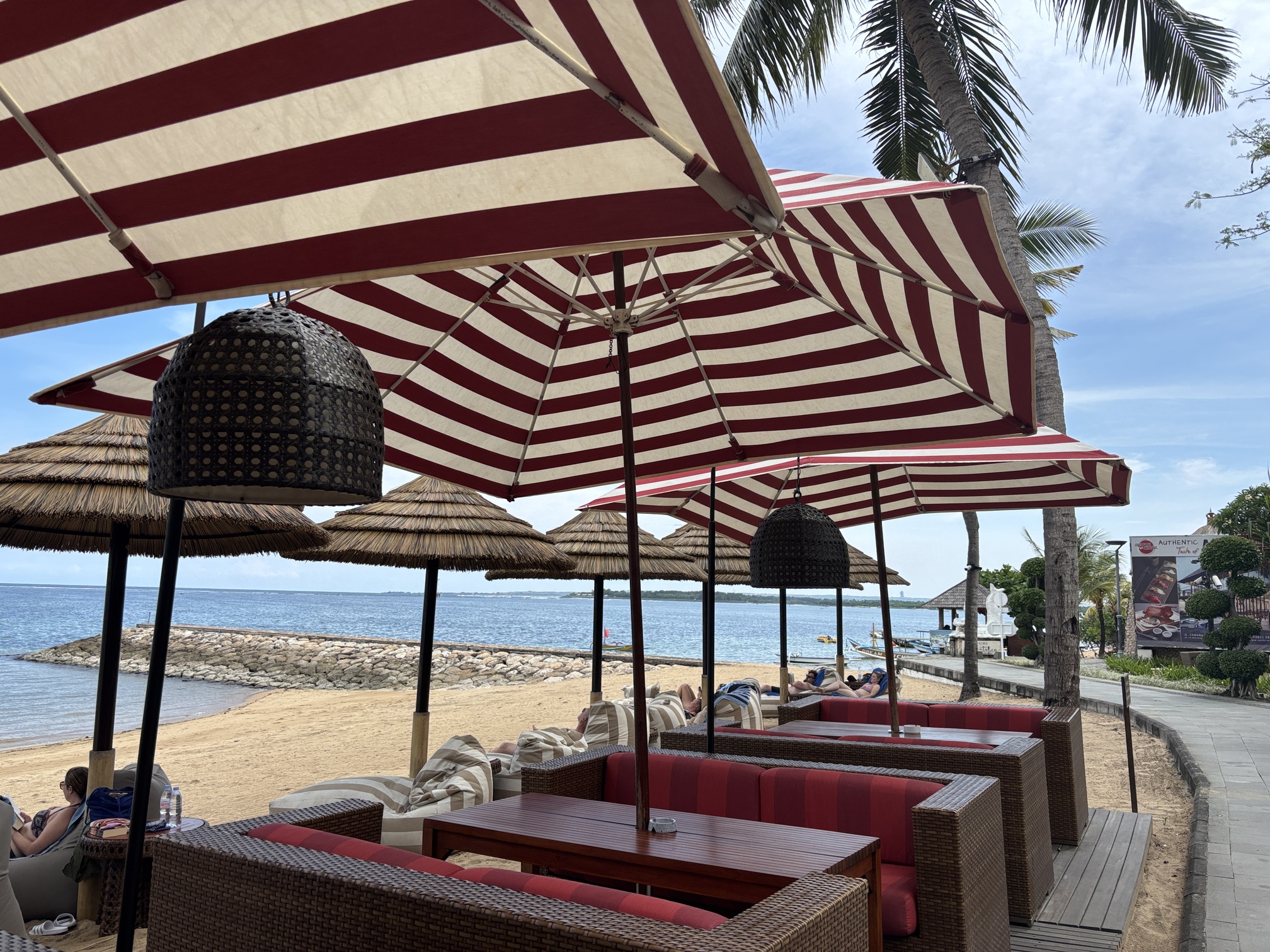 ビーチから道路を挟んだところにもバレがあり、朝一番は空いていることもあったので、狙うなら朝食後そのまま席を確保しに行くのがオススメです。