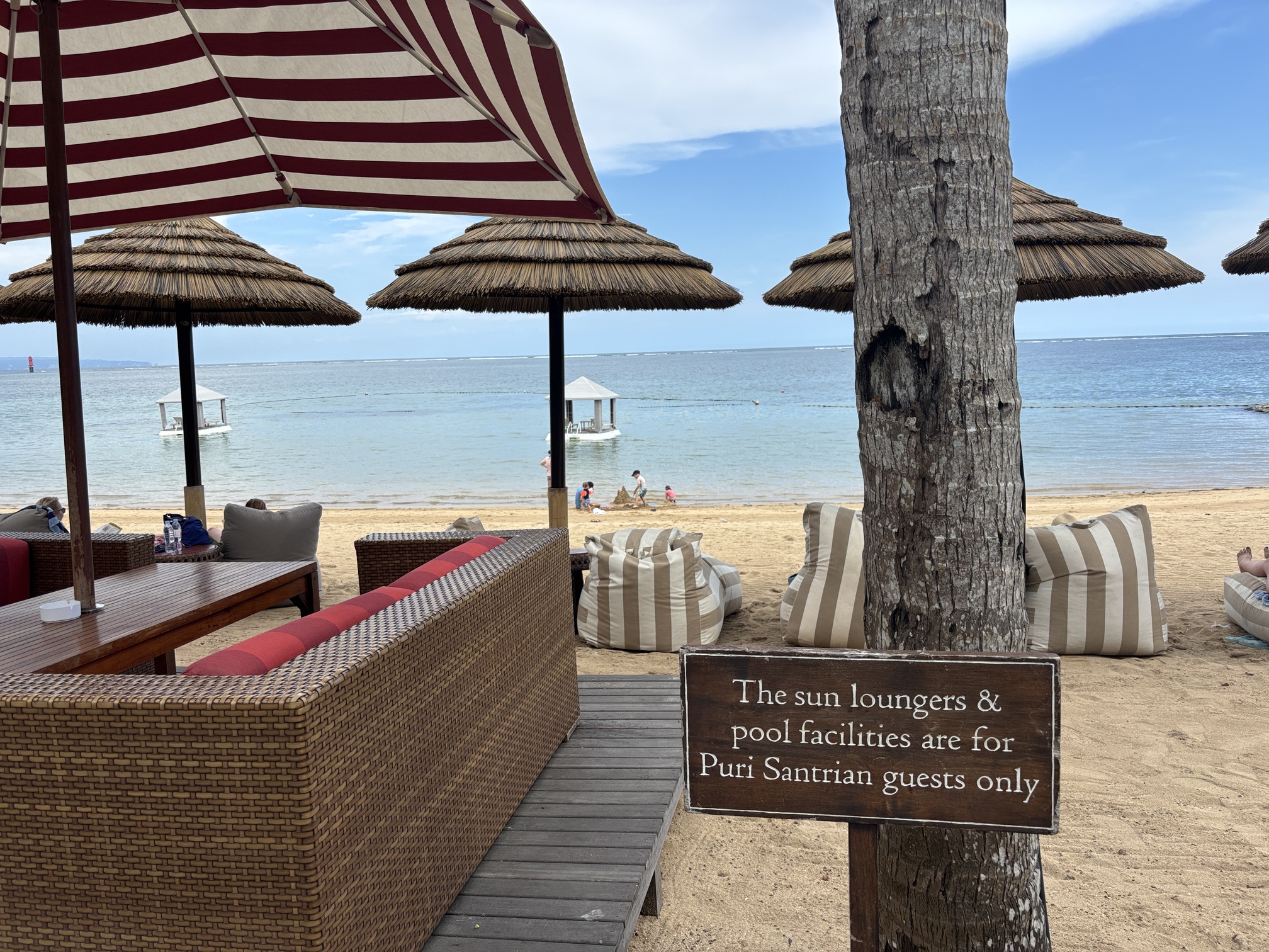ビーチにはデイベッドとカバナがあり、こちらはプリサントリアンのゲスト専用です。