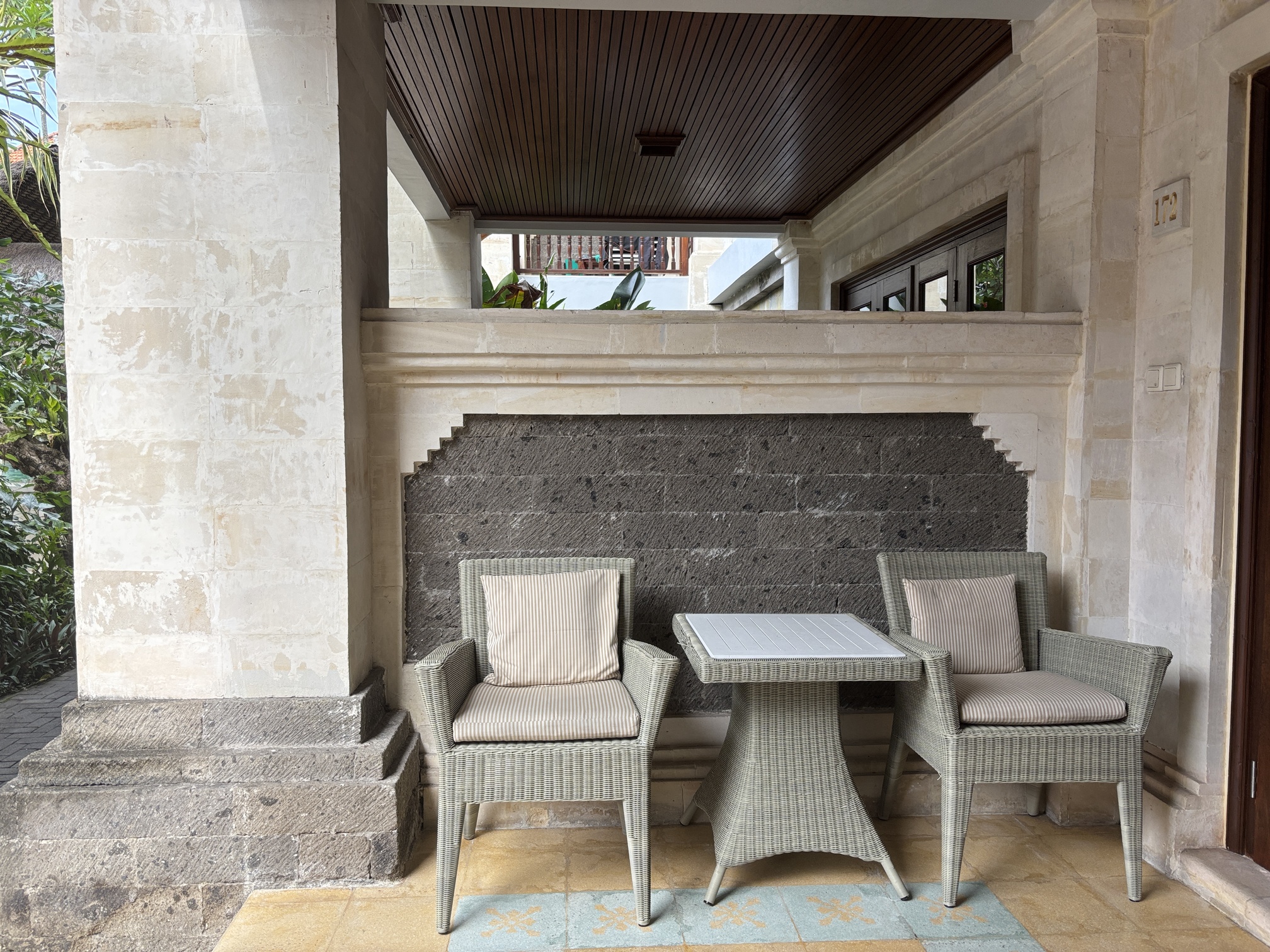 老舗ホテルの1階のお部屋らしく、お部屋の手前にテラスがあるスタイルです。