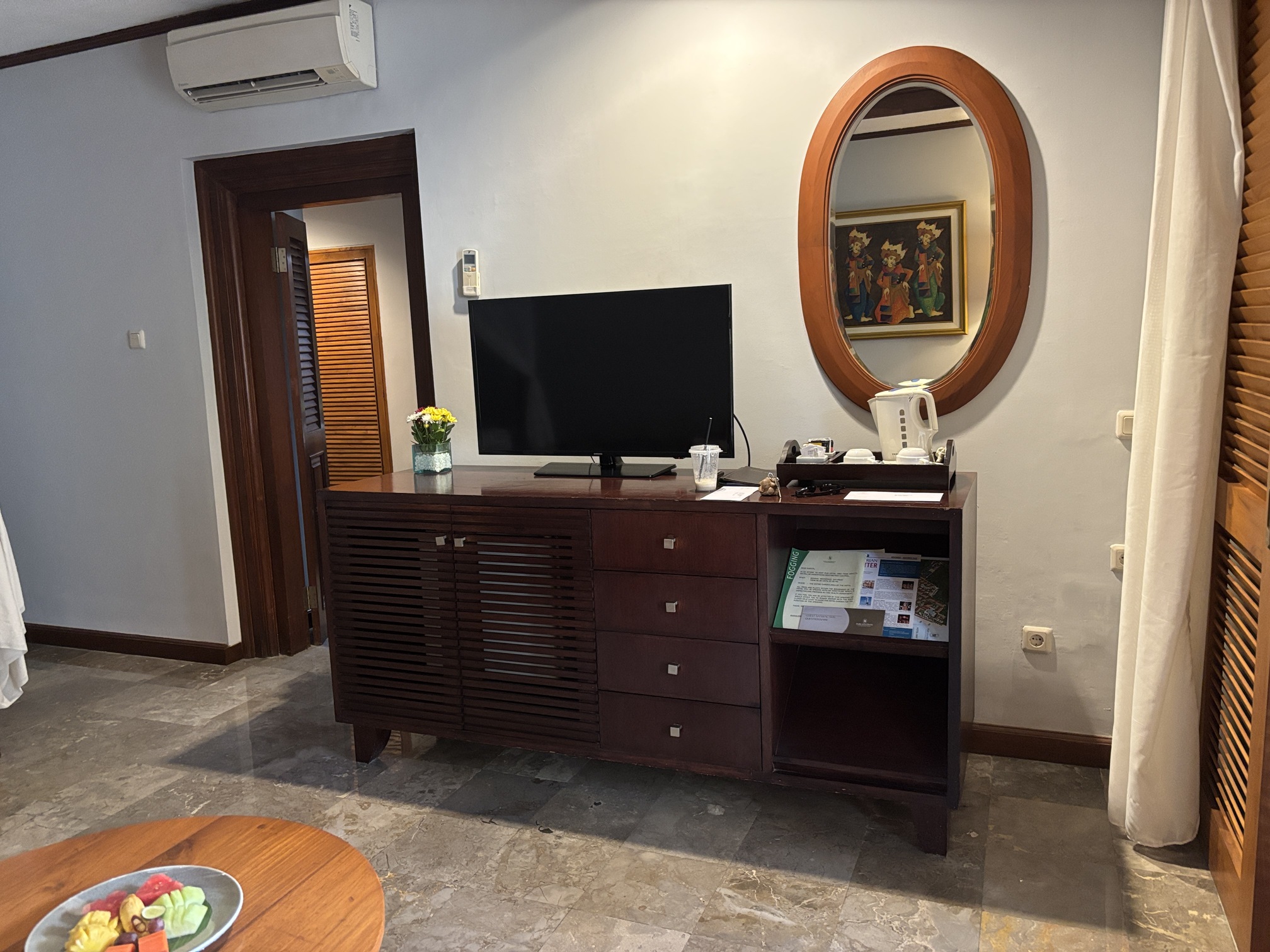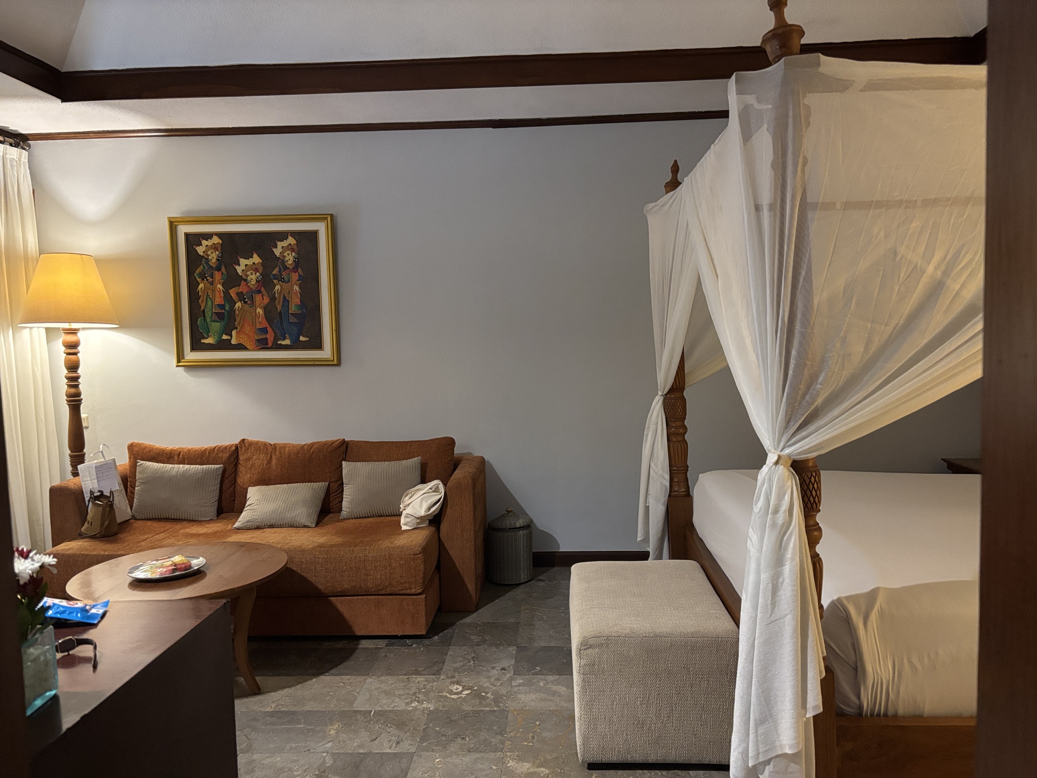 バリ王の現地所長いわく、サントリアンクラブのお客様は「このお部屋じゃないとダメ」という方が多いそうで、長く愛され続けているのが伝わります。