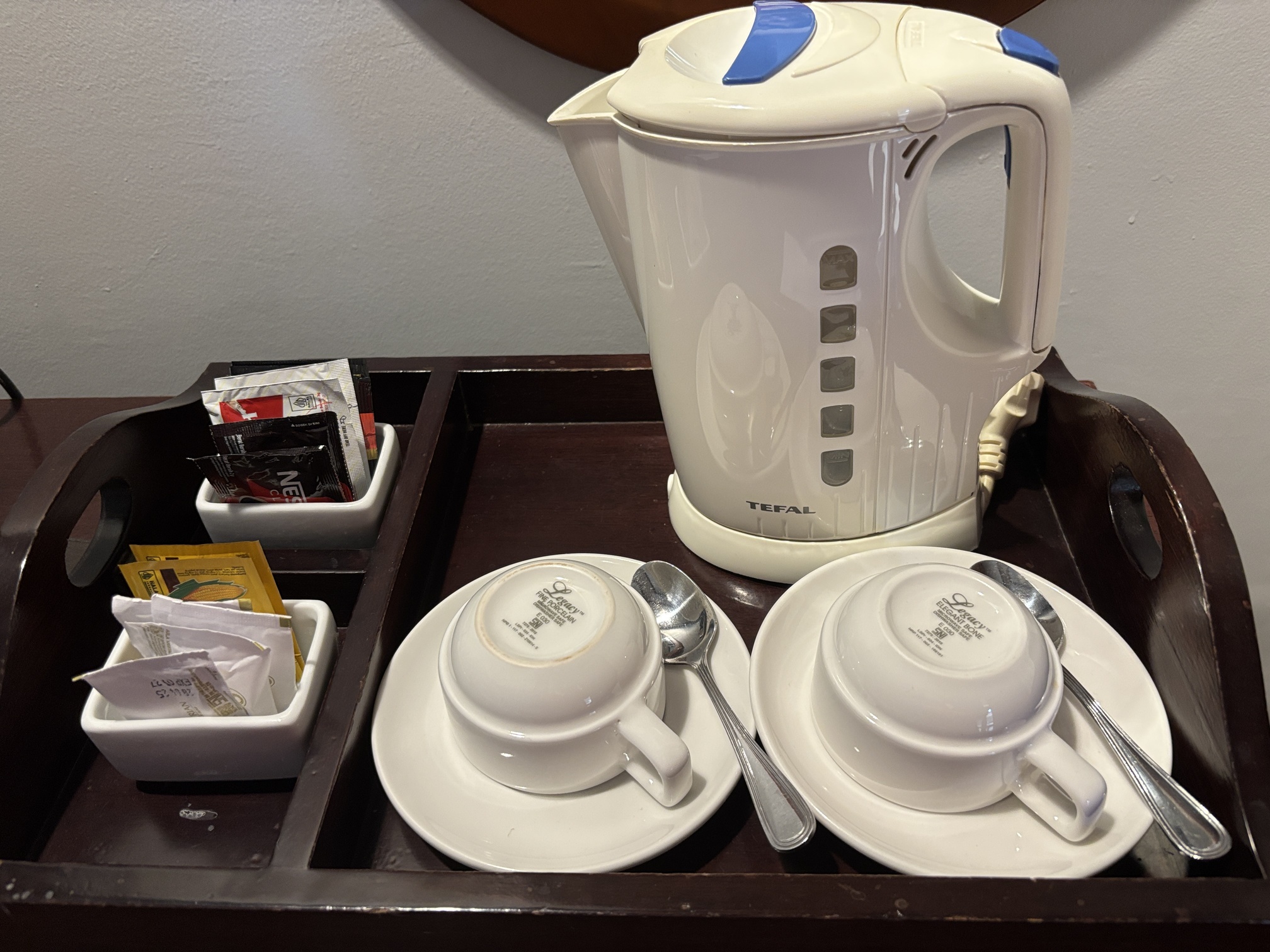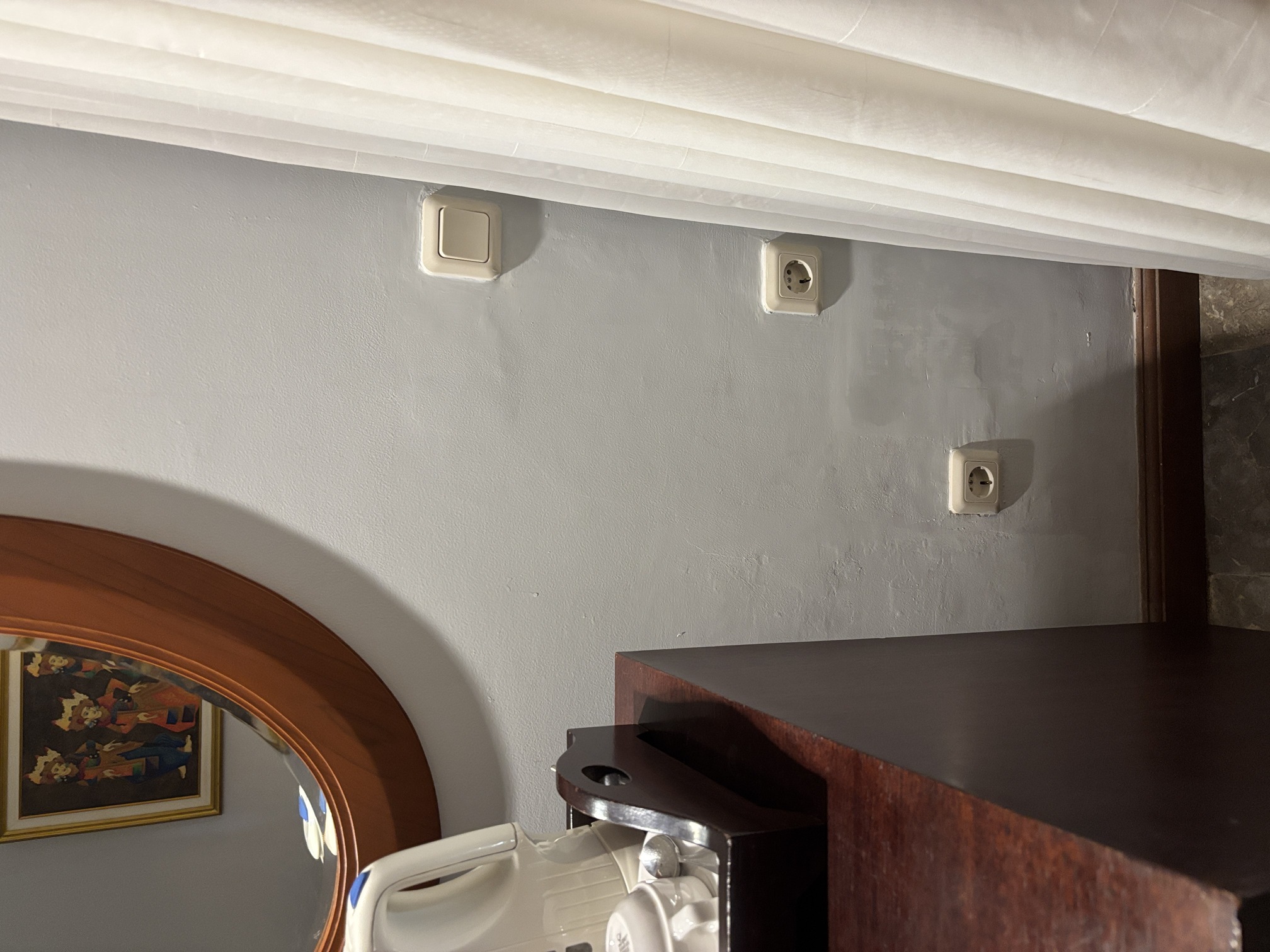ベッドサイドになかったコンセント、私が見つけられたのはここだけでした。ソファまでもかなり距離があり、持っている3メートルのUSB でなんとかギリギリ届くか・・・という感じ。