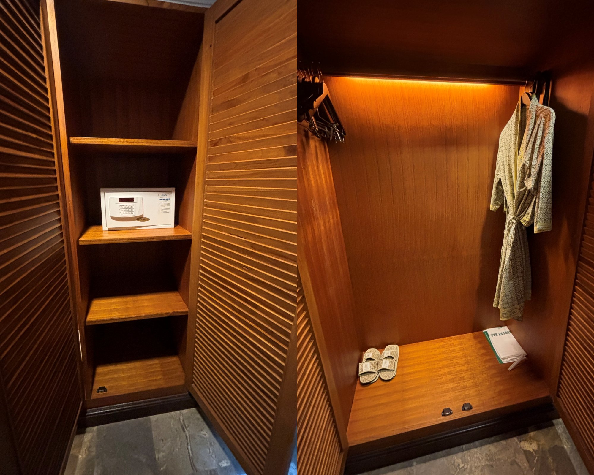 荷物置きの向かいは左側がクローゼット、右側にセーフティボックス。