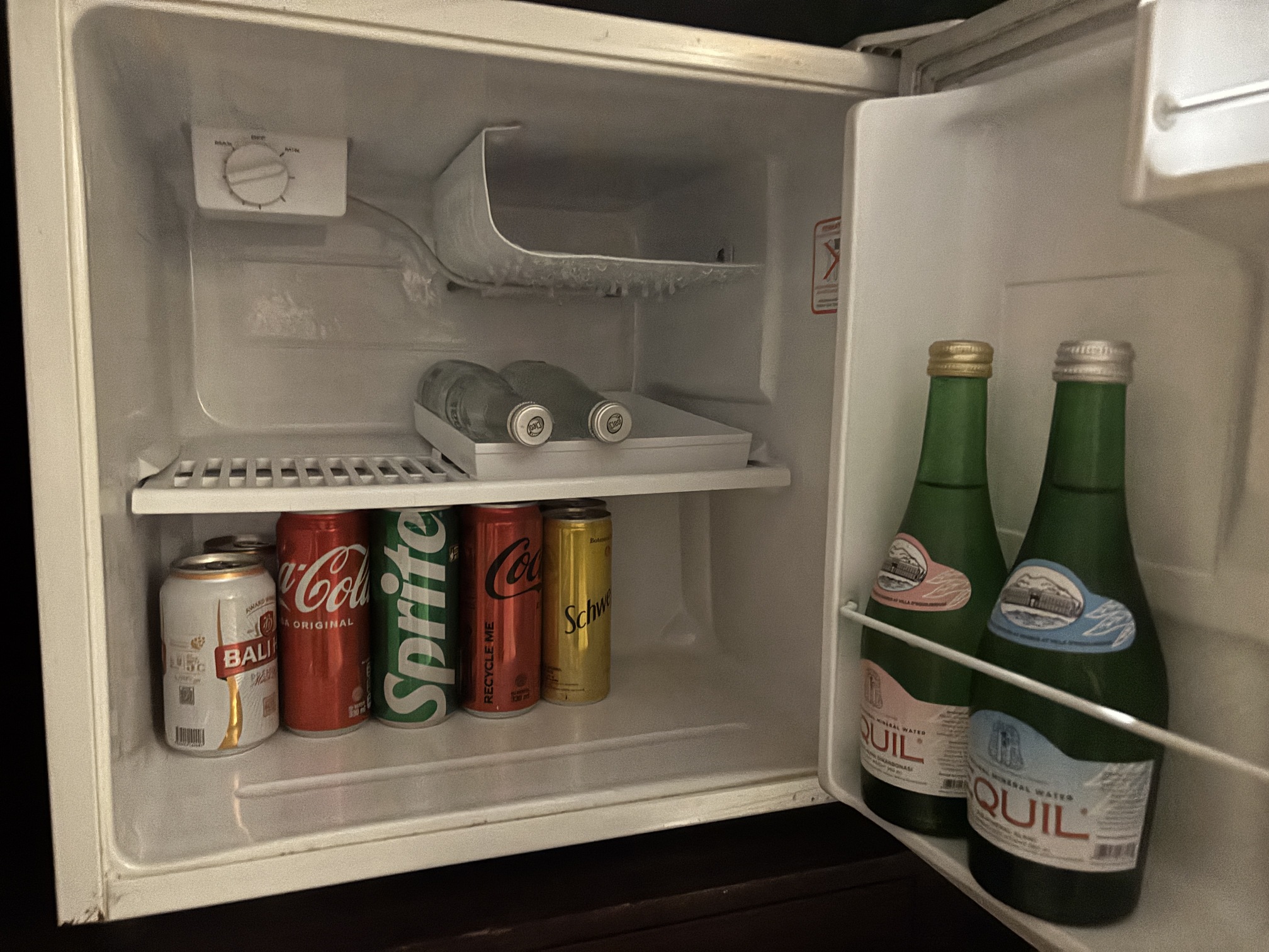 有料のミニバーのラインナップはこちら。お水は洗面台にも2本セットされていて、なくなった分を補充してくれました。