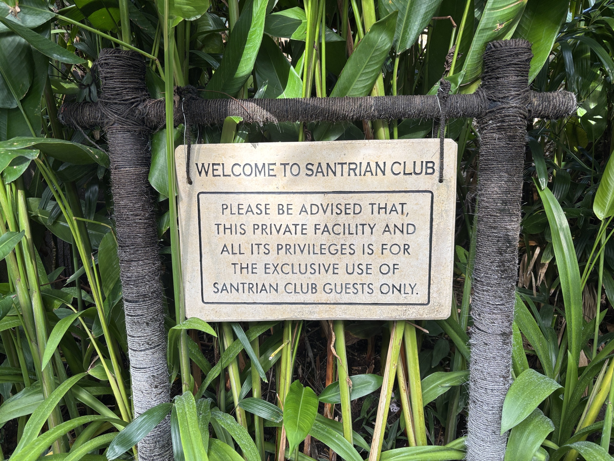 サントリアンクラブへの入り口にはこんな注意書きが。