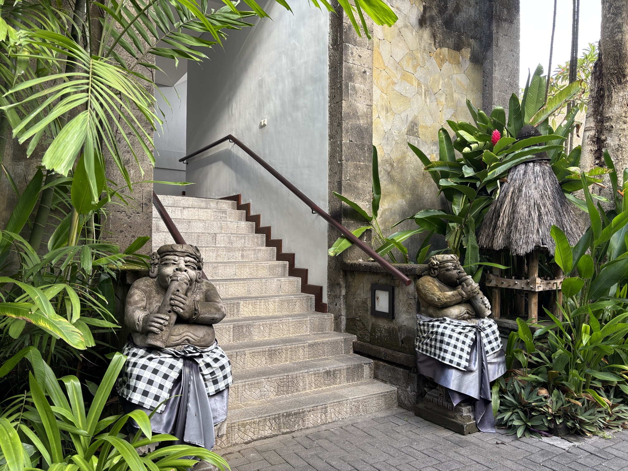 2階以上の客室へ上がる階段にも、バリらしい石像がありました。