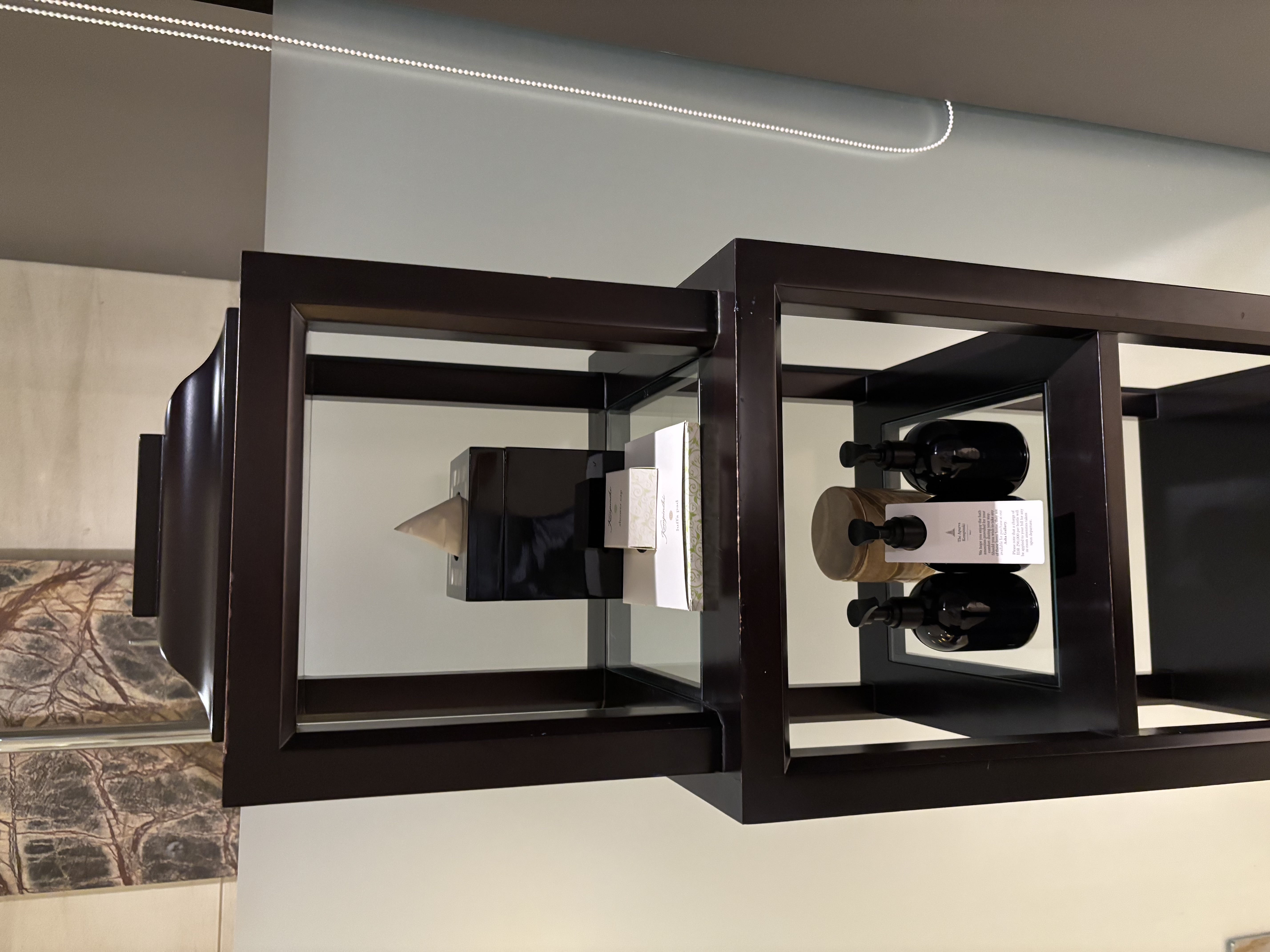 洗面台はゆったり使える2ボウル仕様で、アメニティもすべてここに揃っています。マルチタイプのコンセントもあり、朝の準備を落ち着いて進められそうです。
