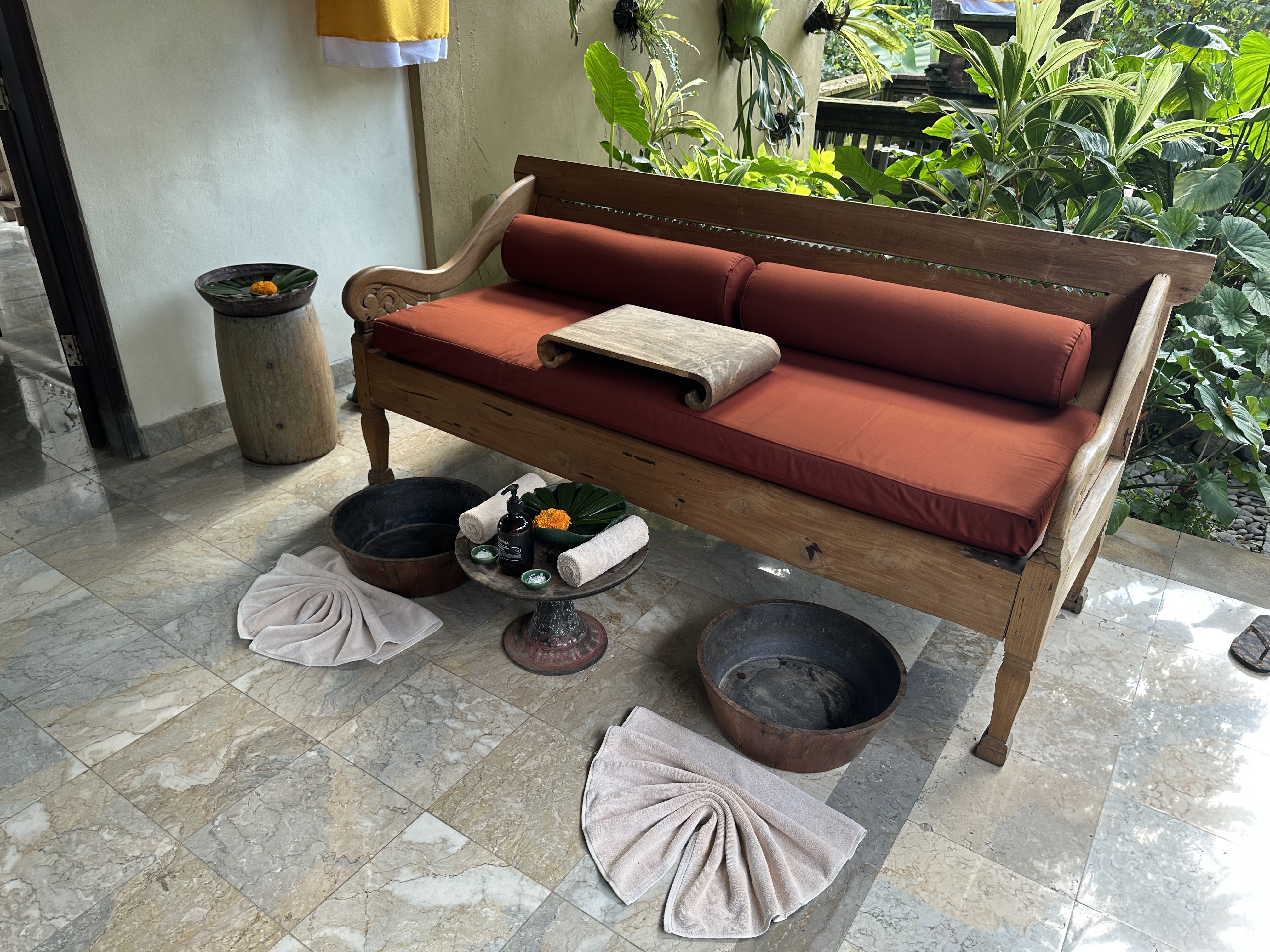 ウブドの自然を身近に感じられる、素朴で落ち着いた雰囲気のトリートメントルームです。