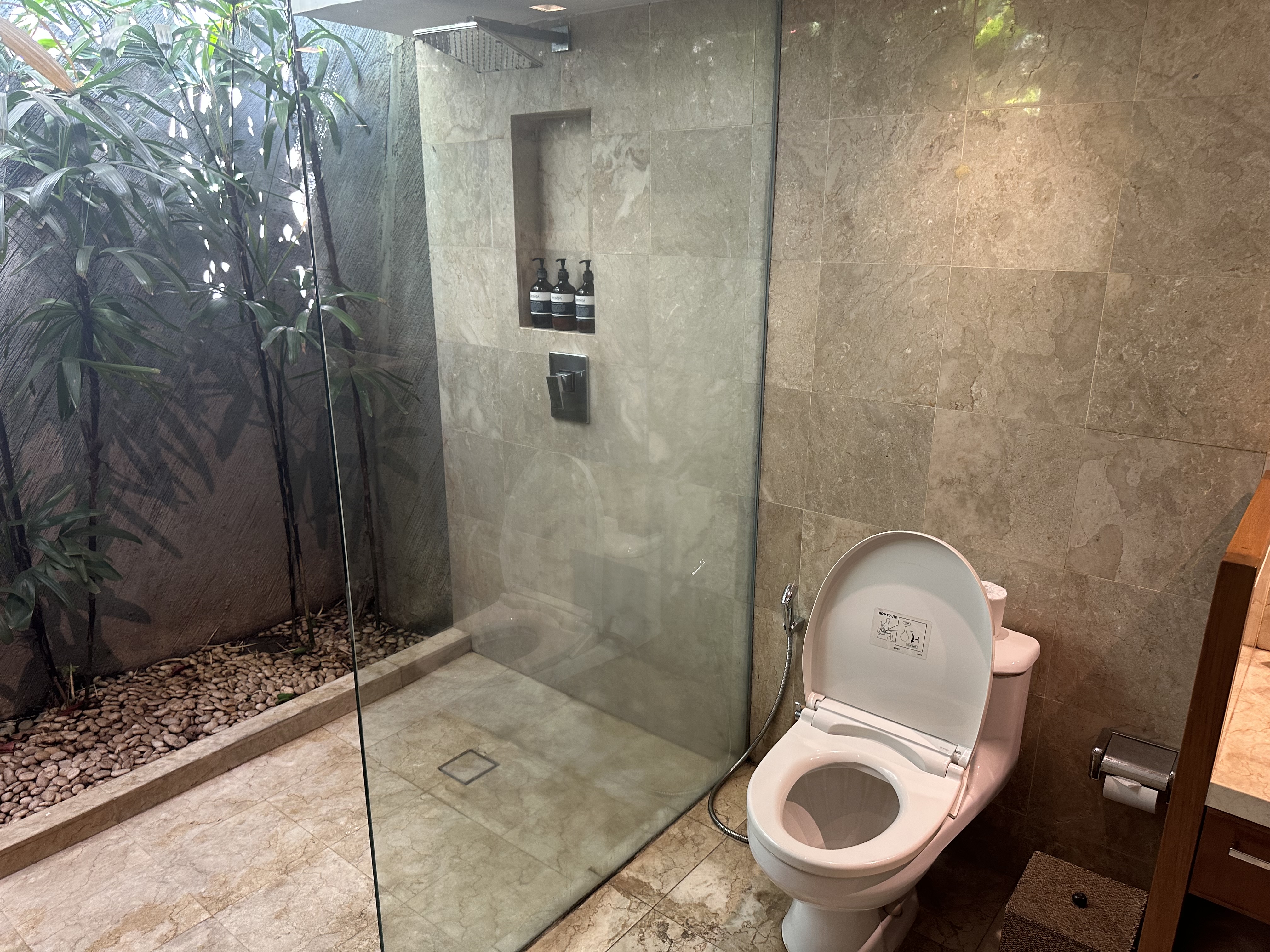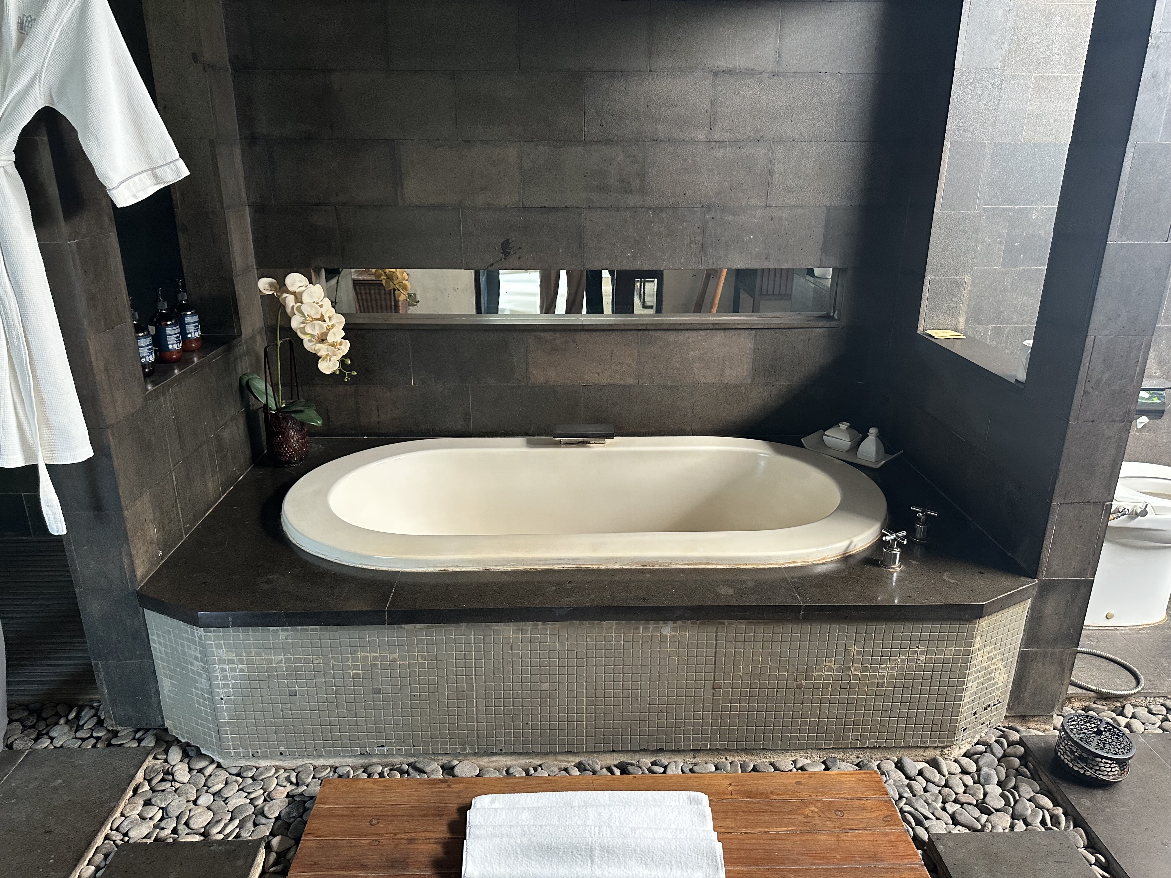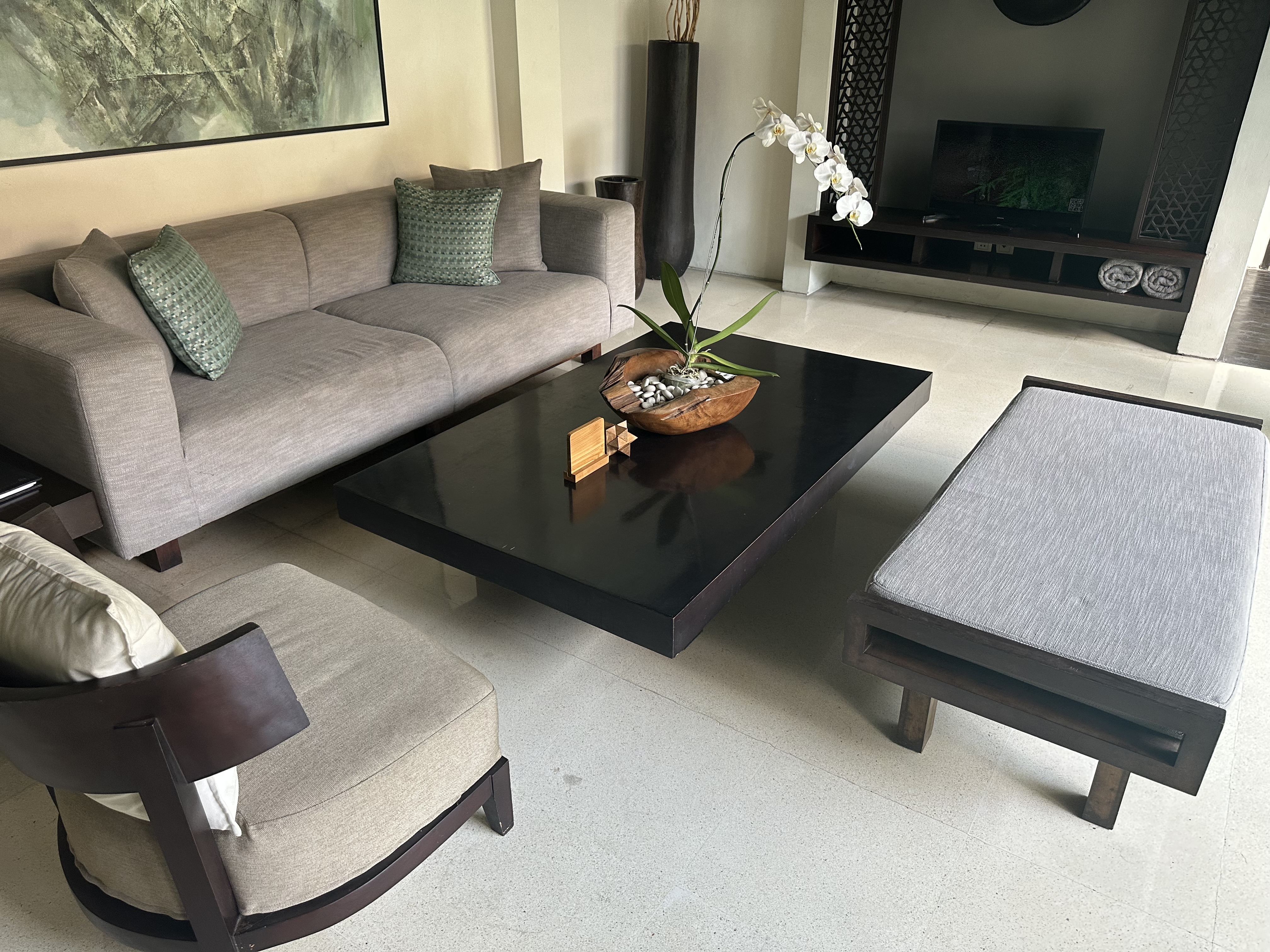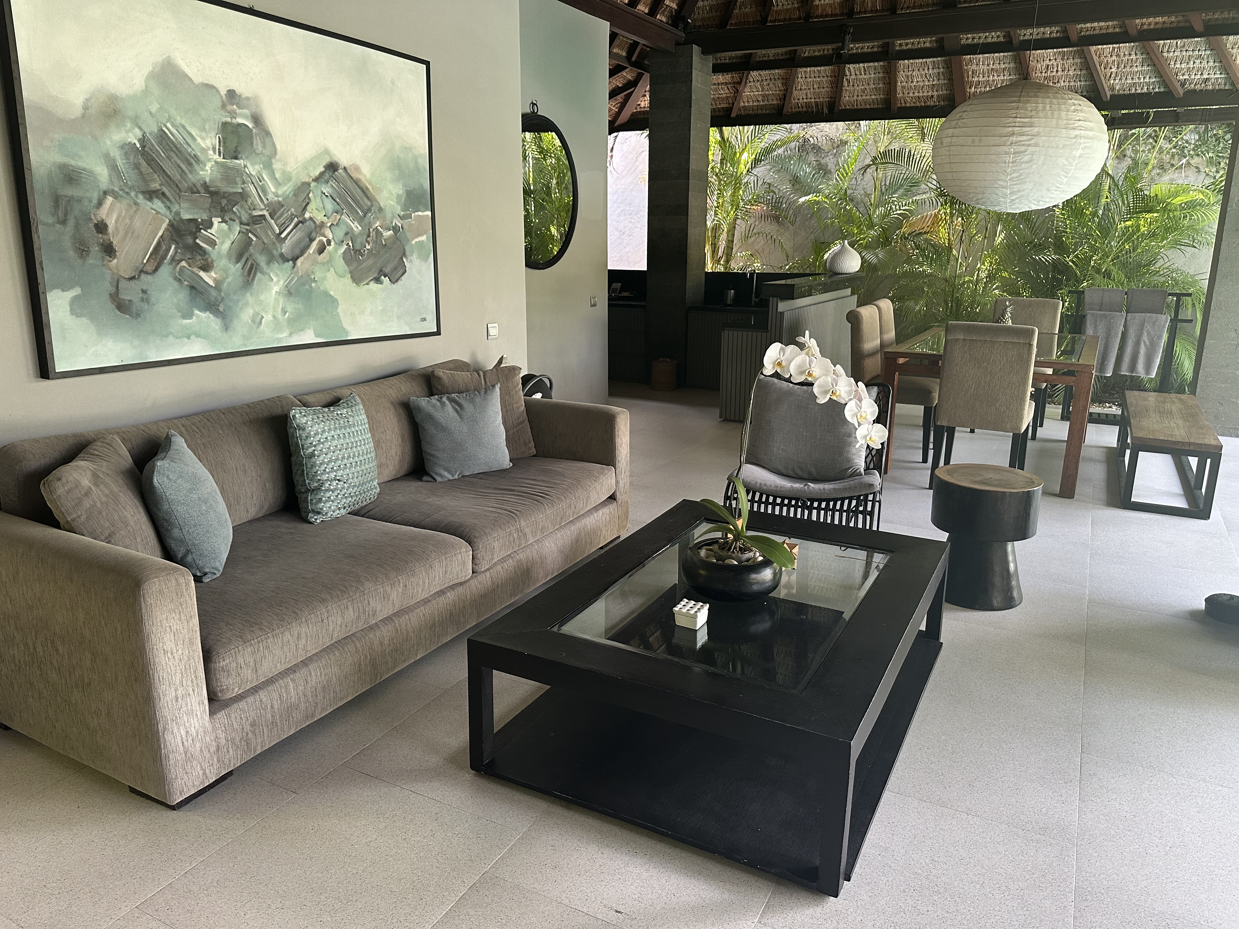 緑豊かなガーデンに大きなプライベートプール、そして開放感のある半屋外のリビング&ダイニングスペースがとても印象的でした。また、部屋番号ごとにヴィラの雰囲気が少しずつ異なるとのことで、その点も魅力のひとつだと感じました。