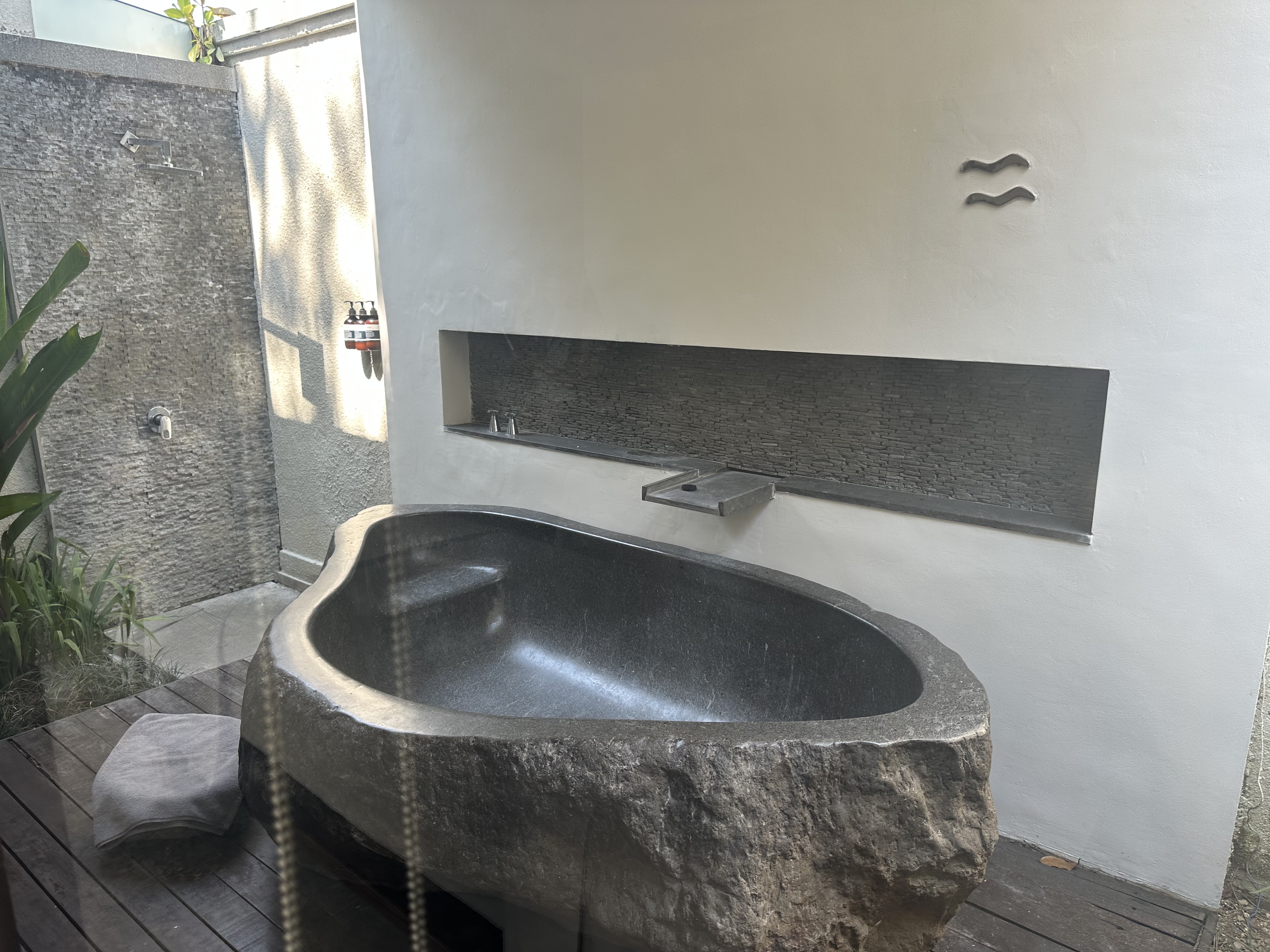 トリートメントルームは光が差し込むつくりで明るく、半屋外のバスタブもあり、リフレッシュした気分をさらに高めてくれる印象でした。