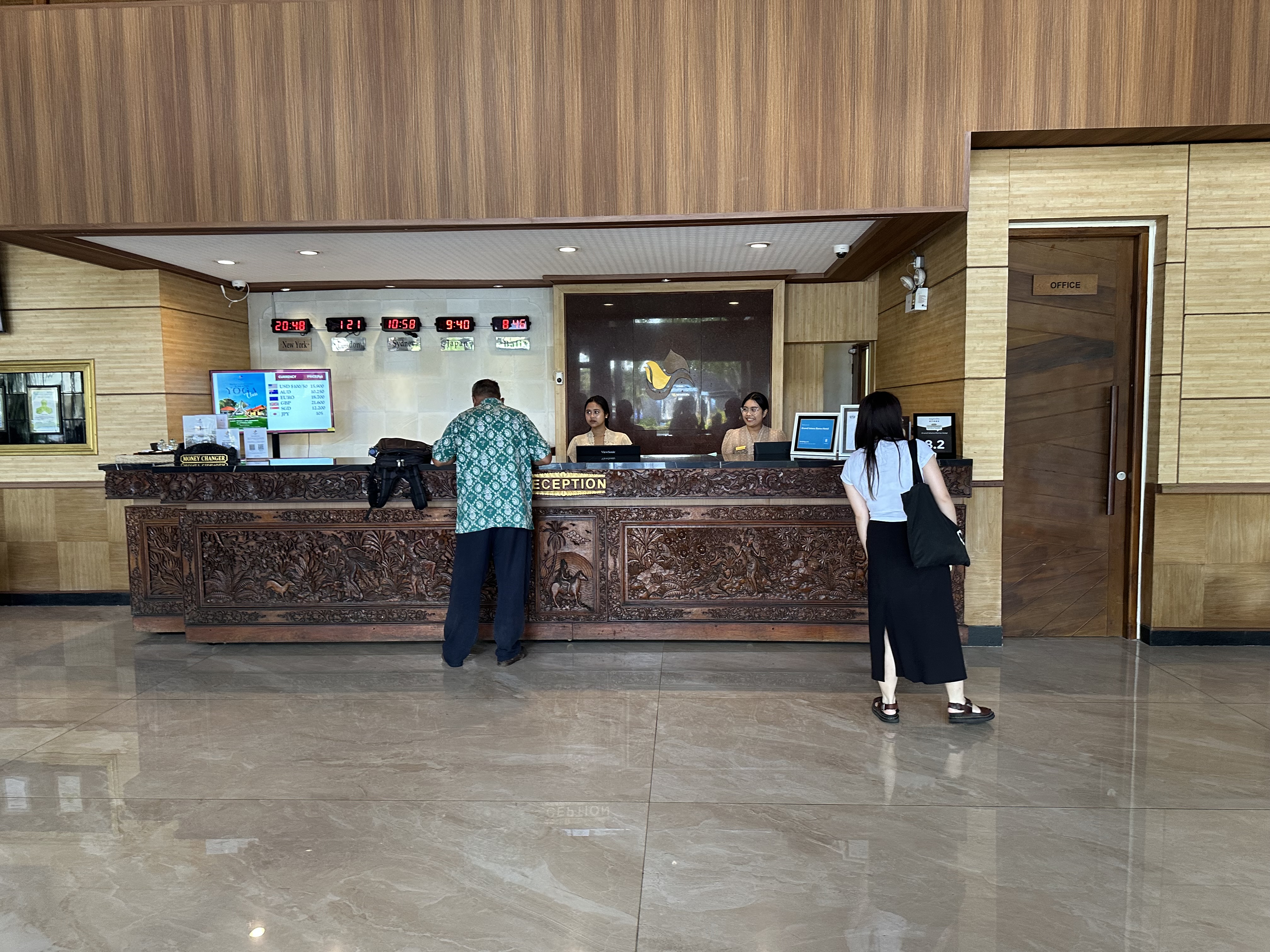 フロントは、世界の様々な時間が表示されて、昔ながらのバリらしさを感じれます。