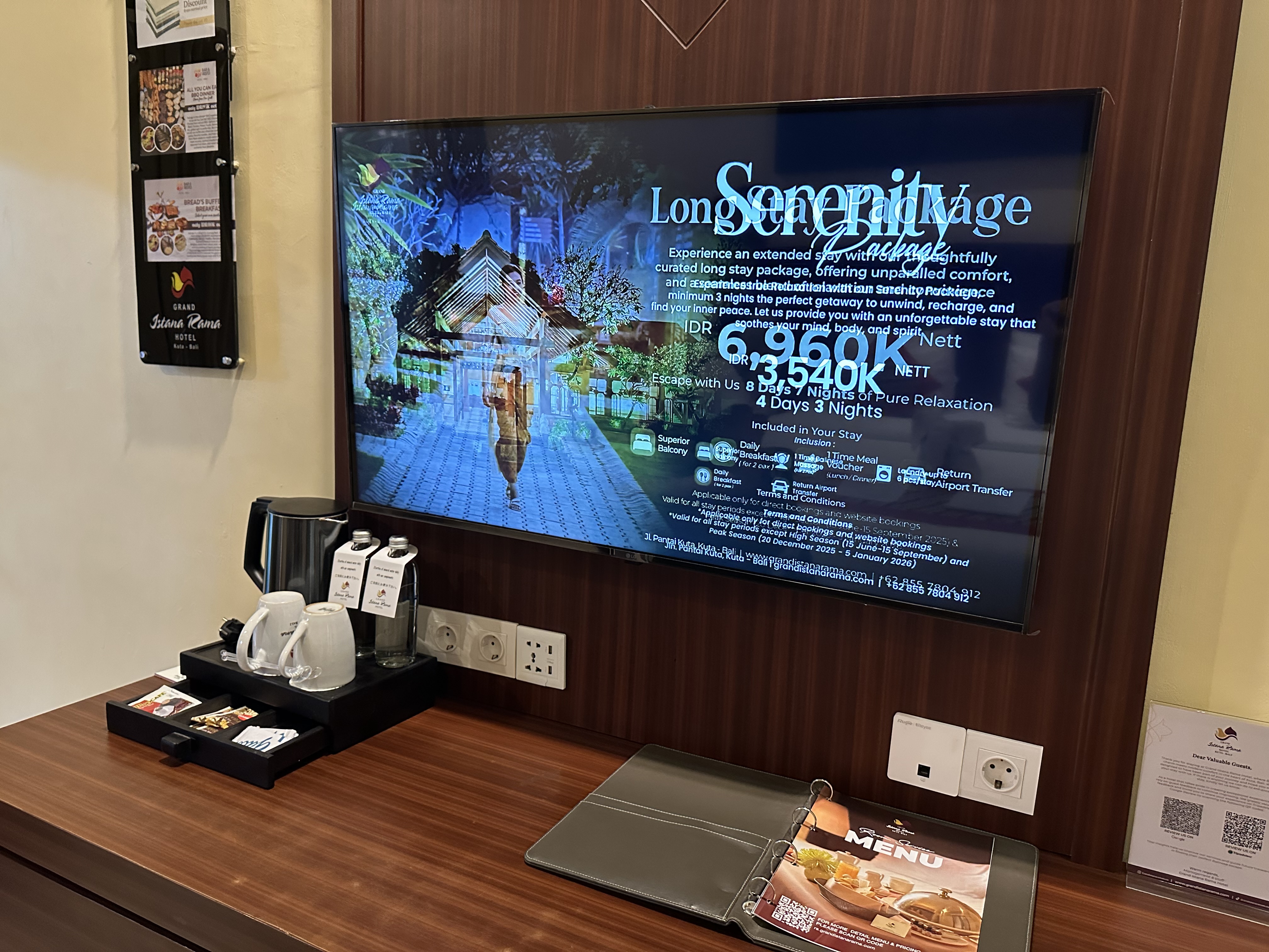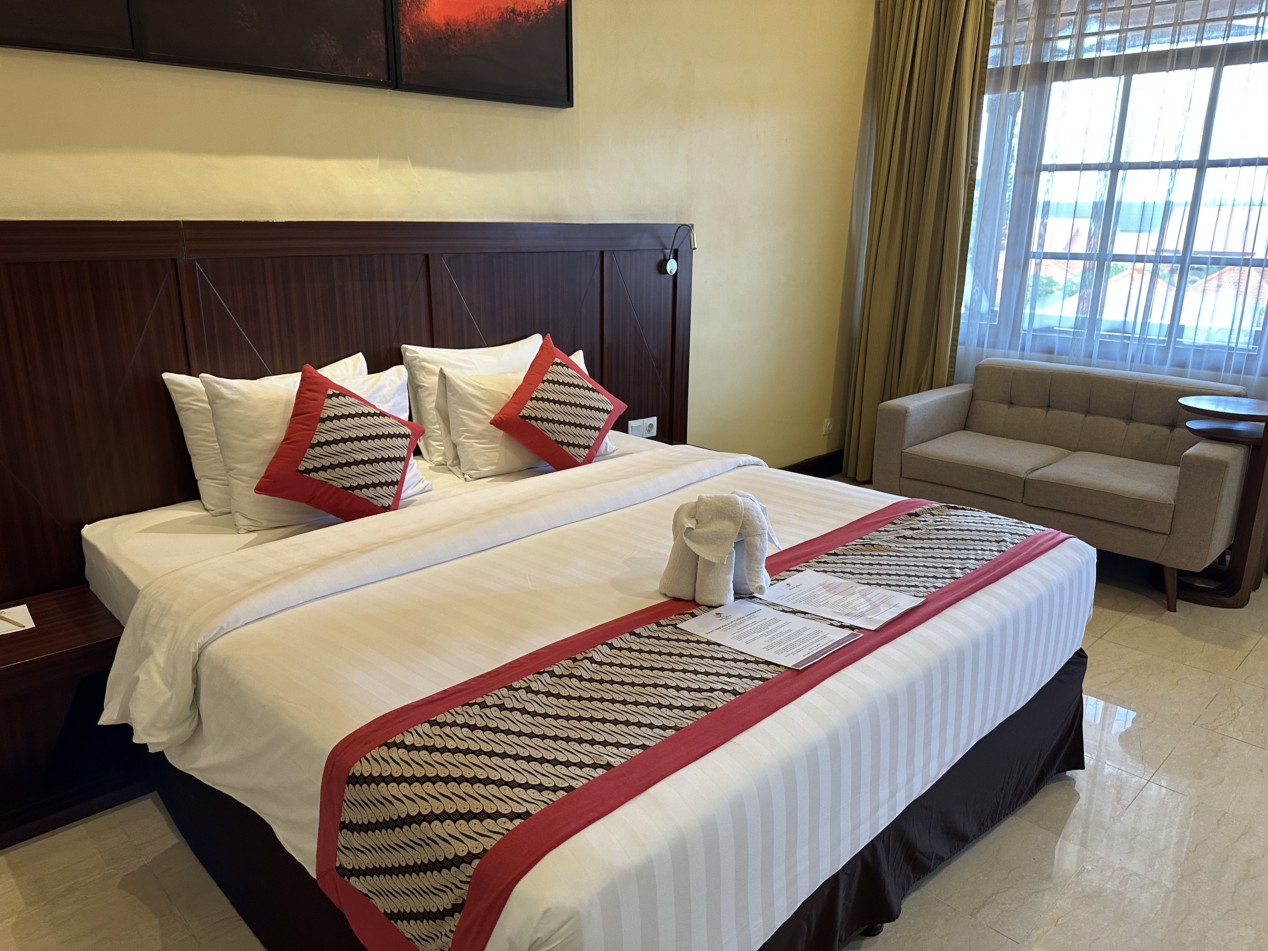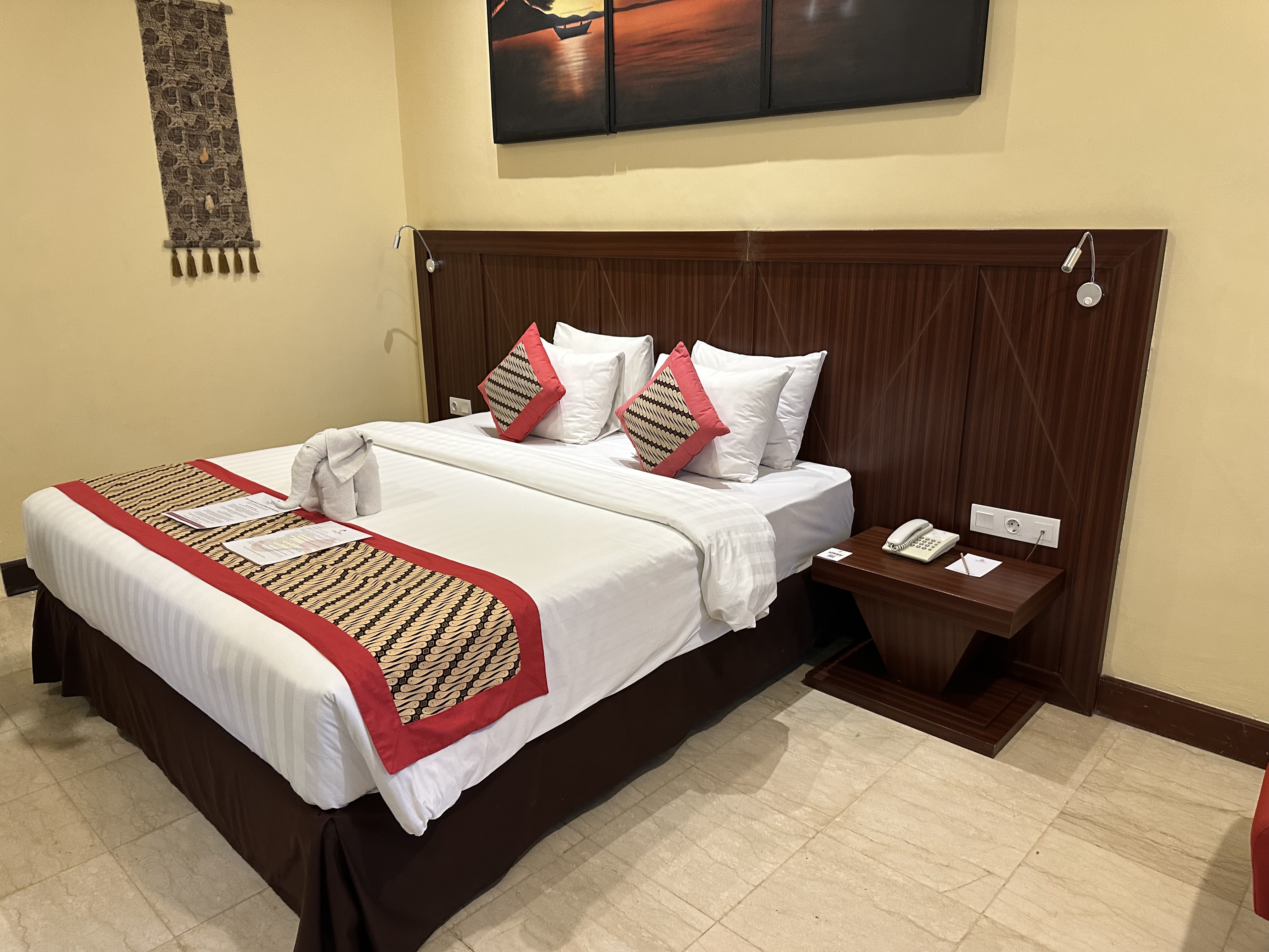 お値打ちなホテルでありながら、お部屋やリゾート内の施設はしっかり整っており、清潔感も感じられました。また、近年はバリらしさを残しつつも現代的な雰囲気のホテルが増える中、グランドイスタナラマは昔ながらのバリらしい要素を多く感じられる点も魅力のひとつだと感じました。さらに、ショッピングやサーフィンに便利な好立地という点も大きな魅力で、コストを抑えて街歩きを楽しみたい方に特におすすめのホテルです。