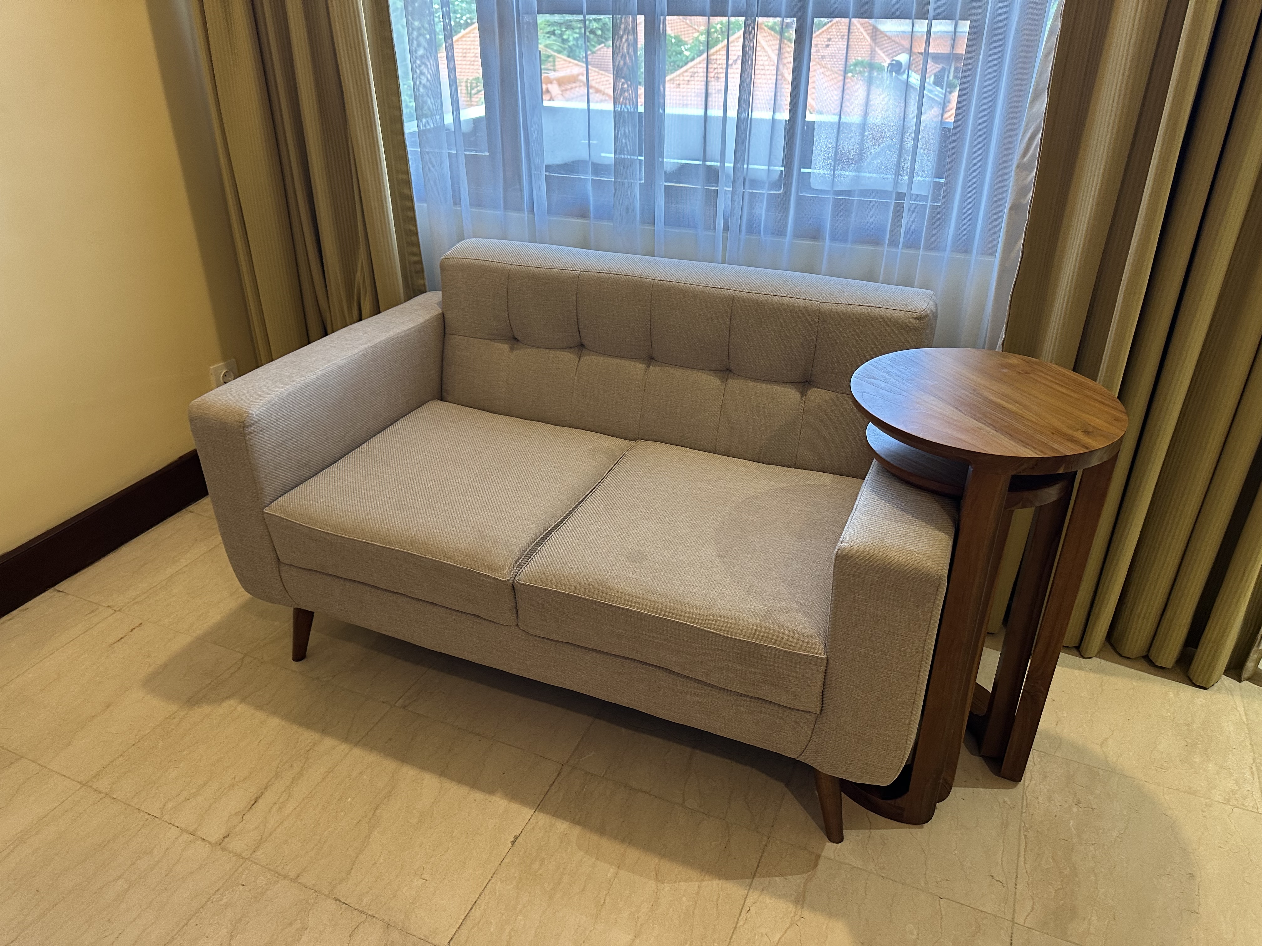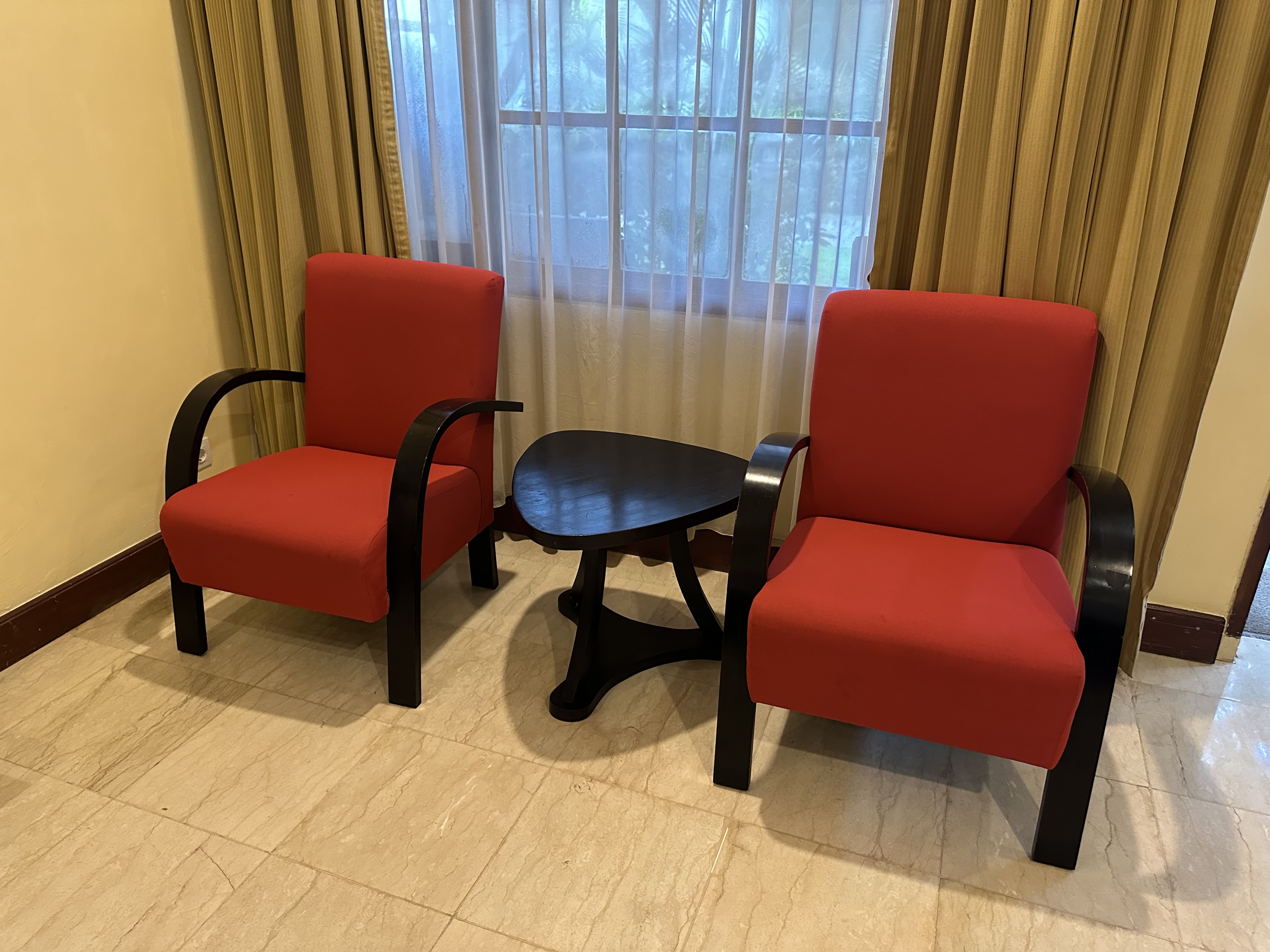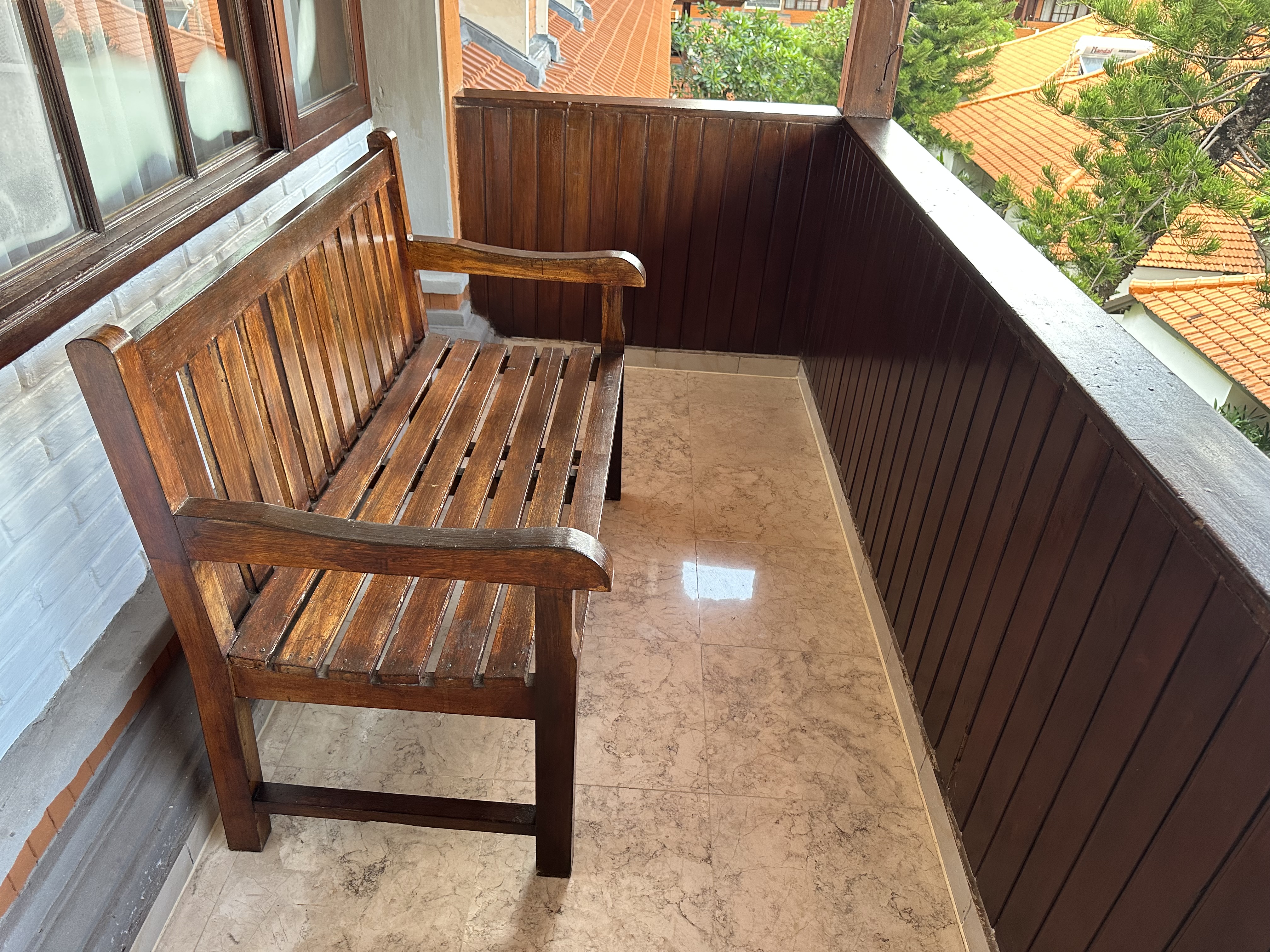 ビルディングタイプの2階または3階のお部屋で、シンプルな造りながらも、バリらしさを感じられる家具やインテリアが印象的でした。