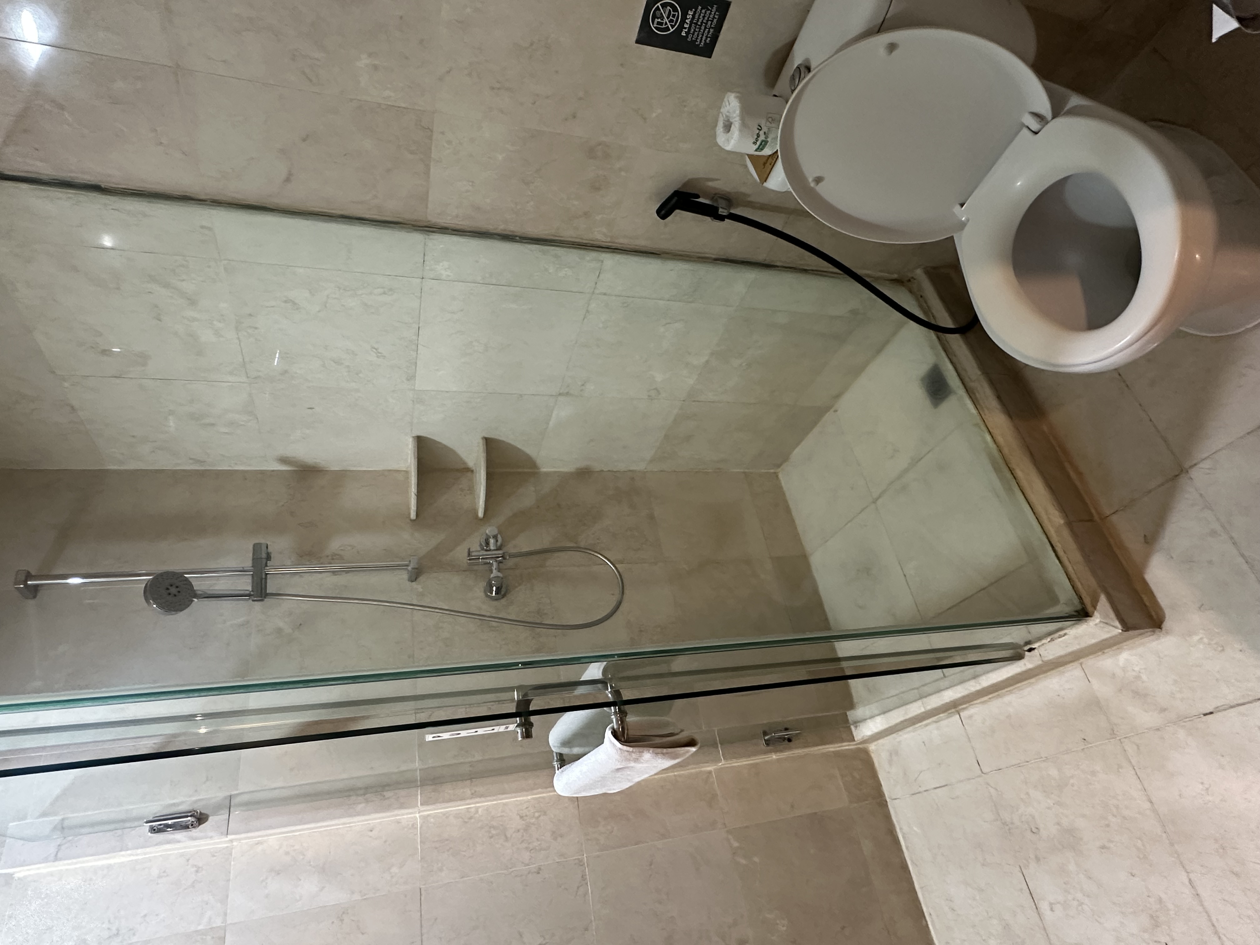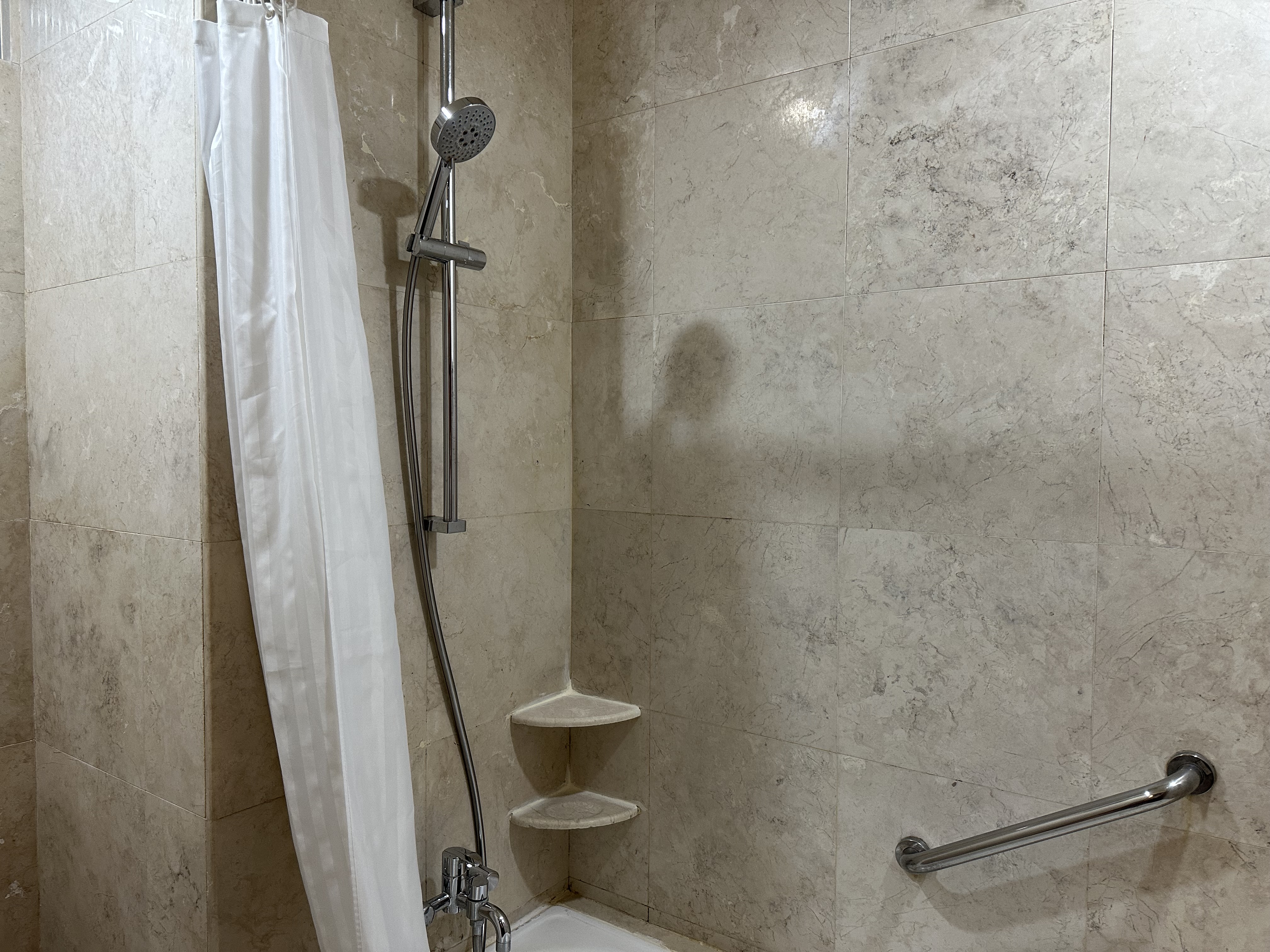 バスルームはバスタブはなくシャワーブースのみですが、しっかりと仕切りがされているため、水が漏れる心配もなさそうで、安心して使えそうな印象を受けました。