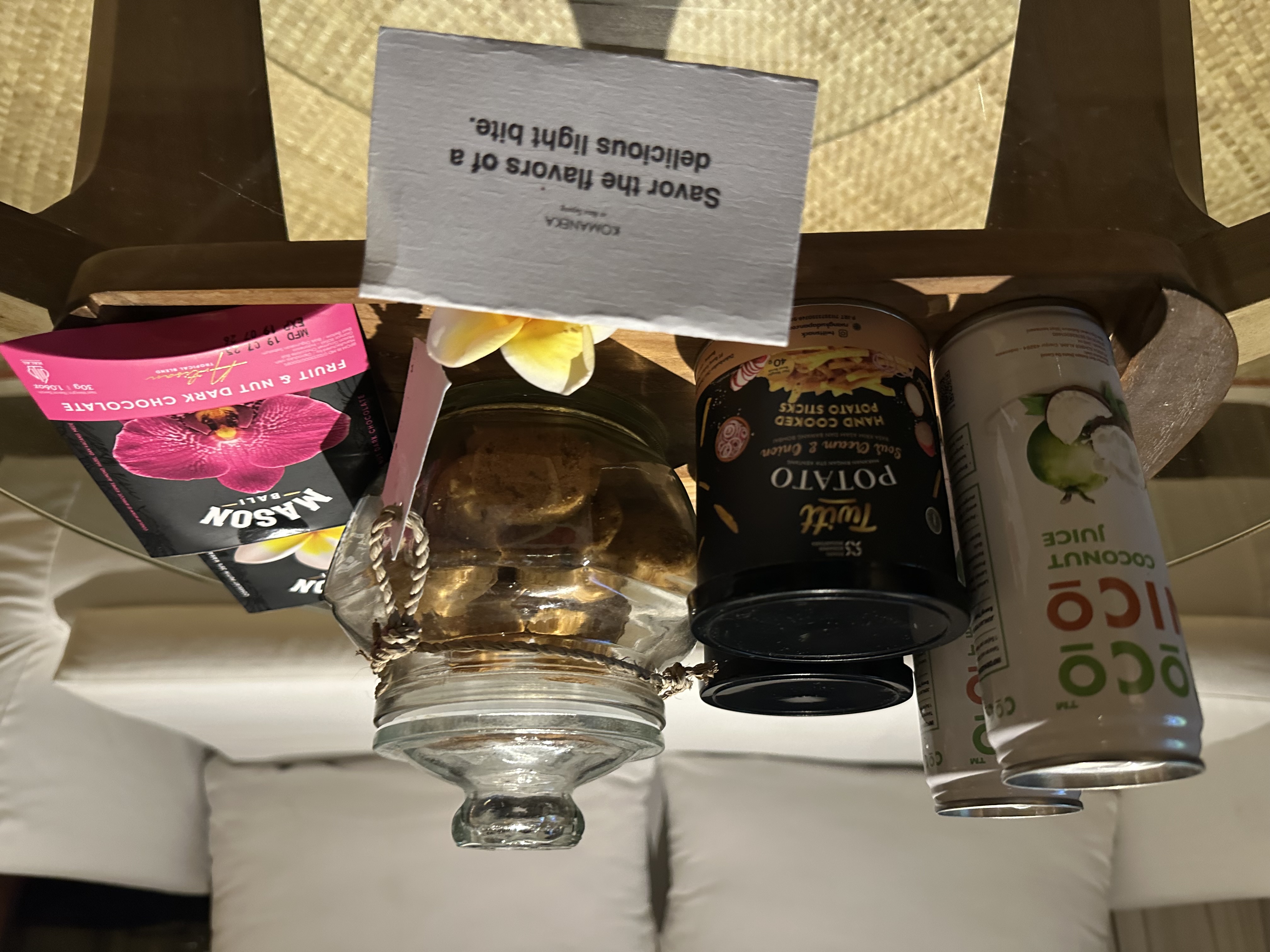 サービスで提供される無料のお菓子と飲み物の中でも、瓶に入ったチョコチップクッキーが特に美味しく、ついつい何度も手が伸びてしまいました!