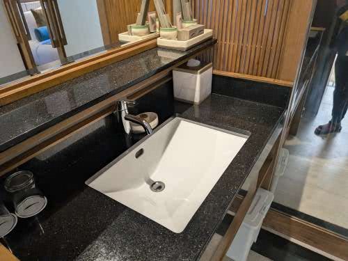 バスルームも広めで、家族でも使い勝手の良い造りになっていました。