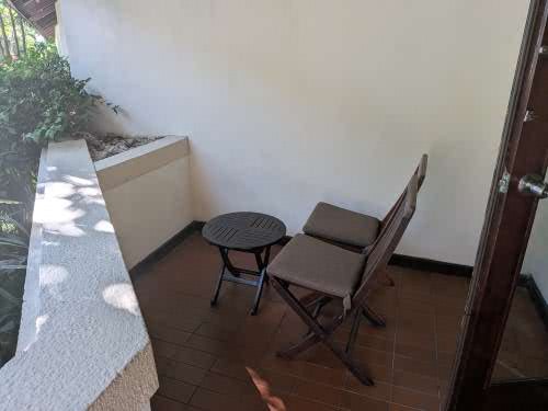 テラスには椅子が備え付けられ、朝の時間帯は特に心地よい風が通り抜けリラックスできます。プールやガーデンに近いため、リゾートらしい開放感をそのまま味わえる点も魅力です。
