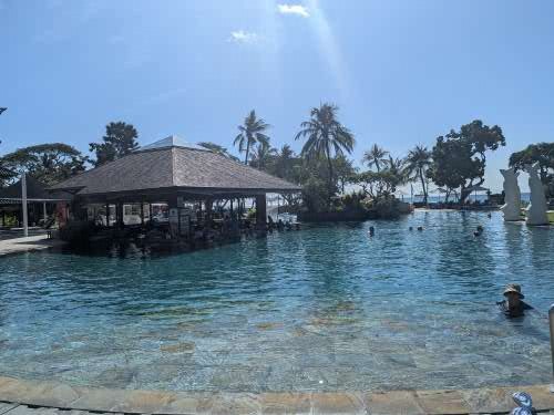 ホテルのメインプールはクタビーチを望む造りで、見晴らしもよく開放感満点です。