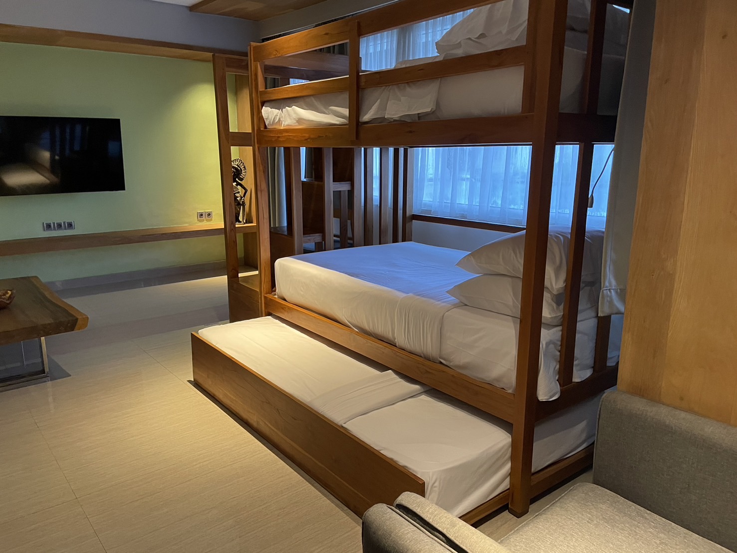 こちらはスイートカテゴリーで家族連れに人気のお部屋になります。広々として、スタイリッシュなスイートのお部屋は、ご家族で快適に一緒に過ごすことができます。