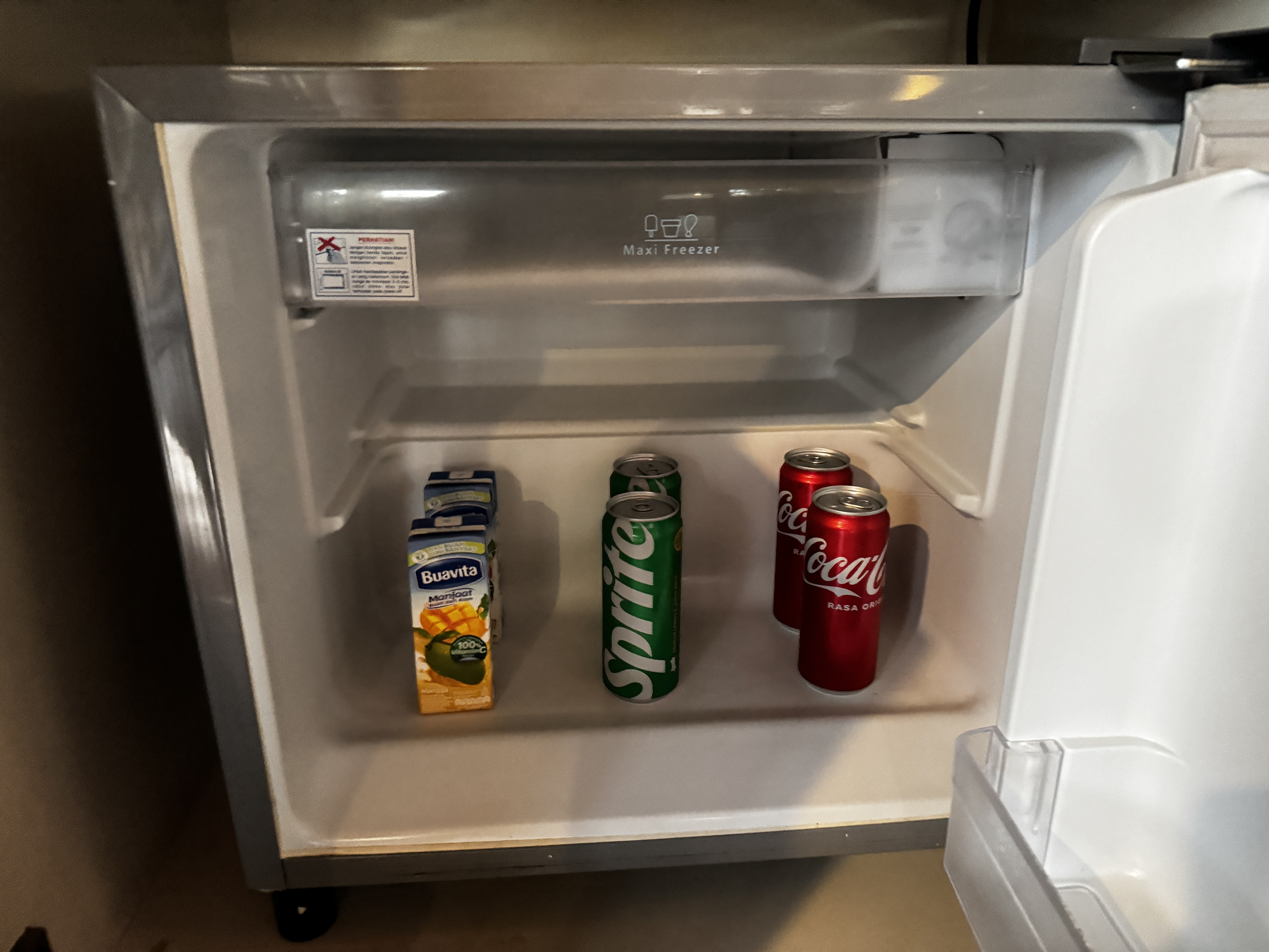キッチン下のミニバーにジュース3種類(各2本)とミネラルウォーター(2本)が入ってます。