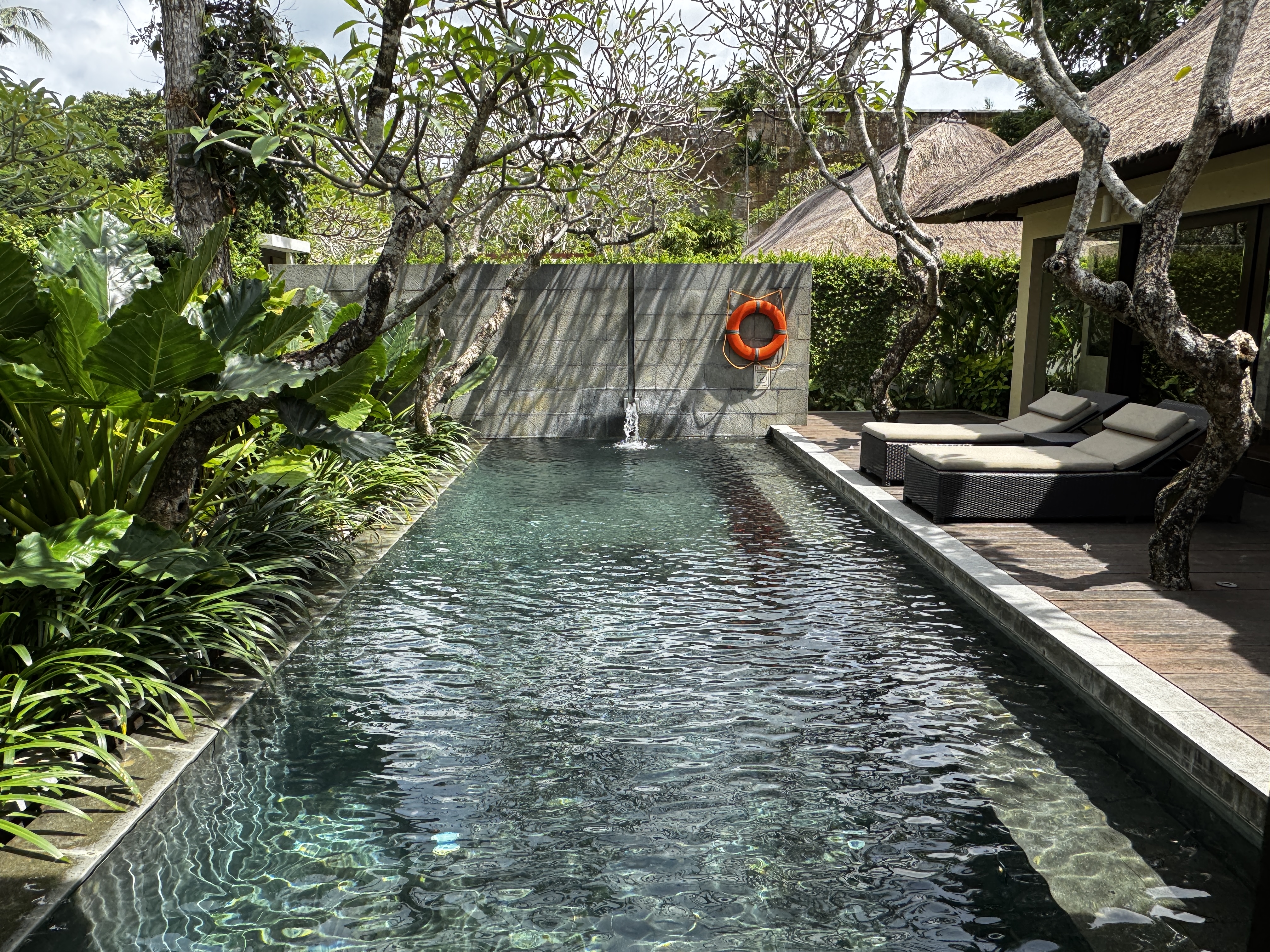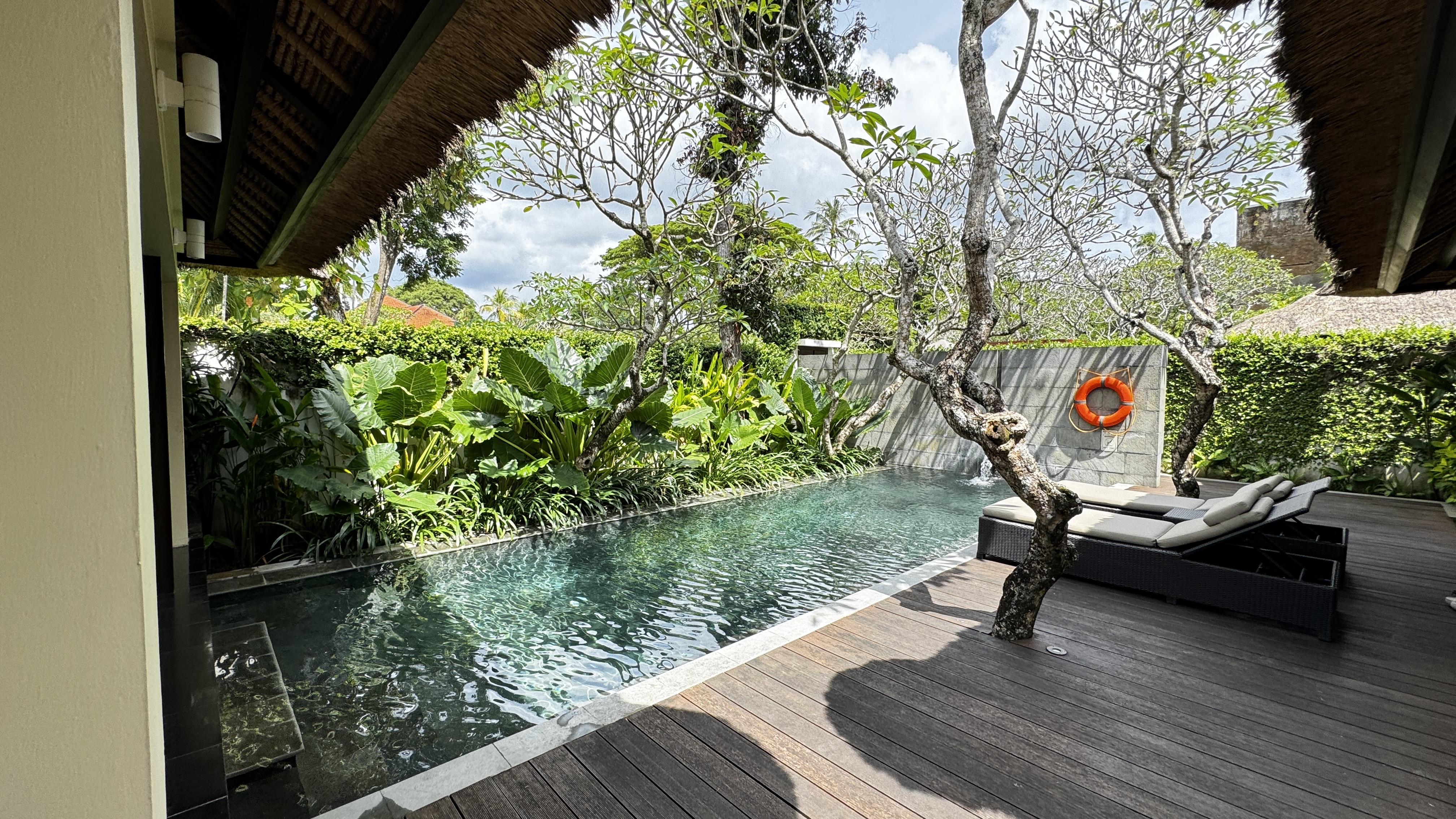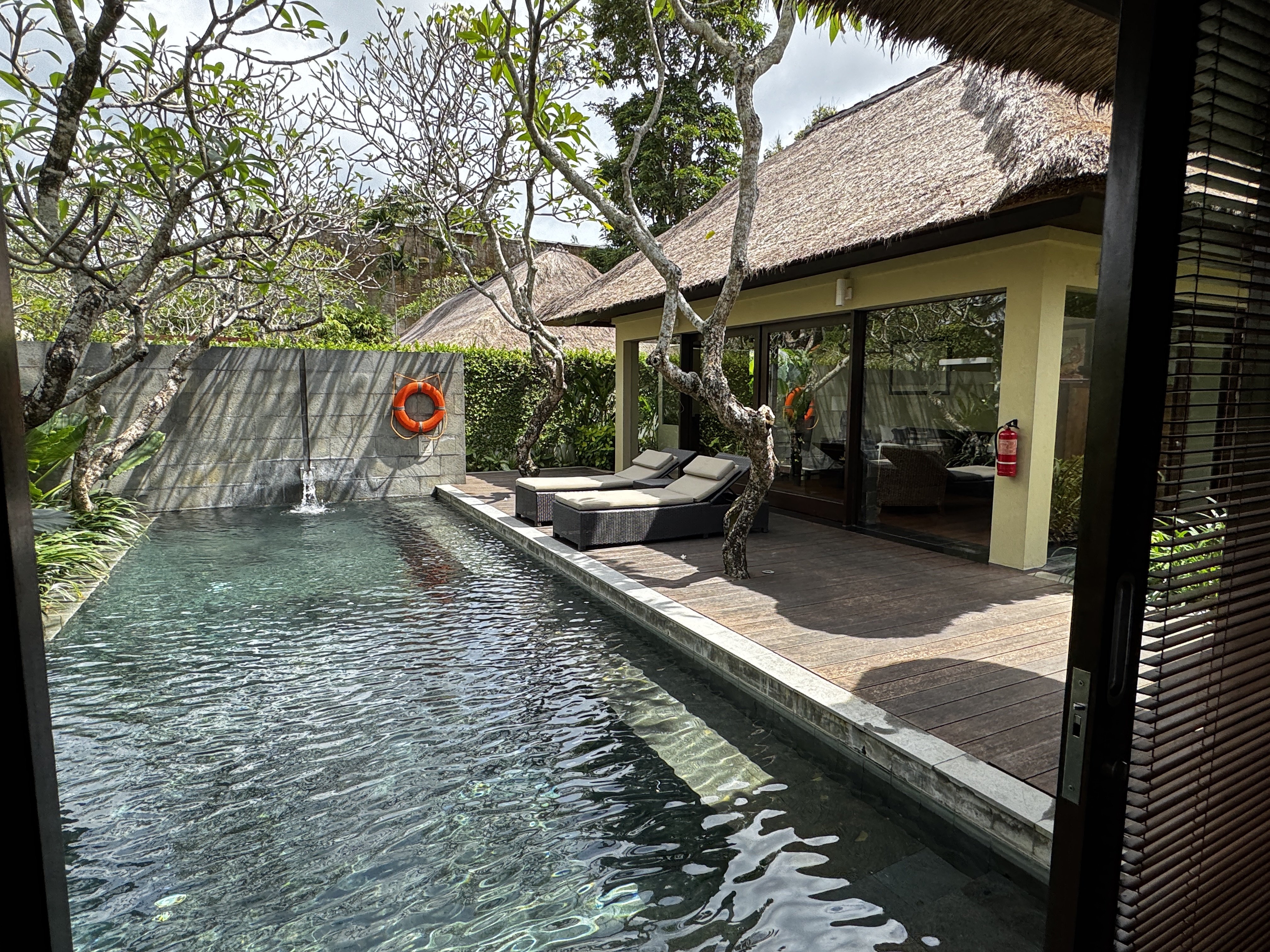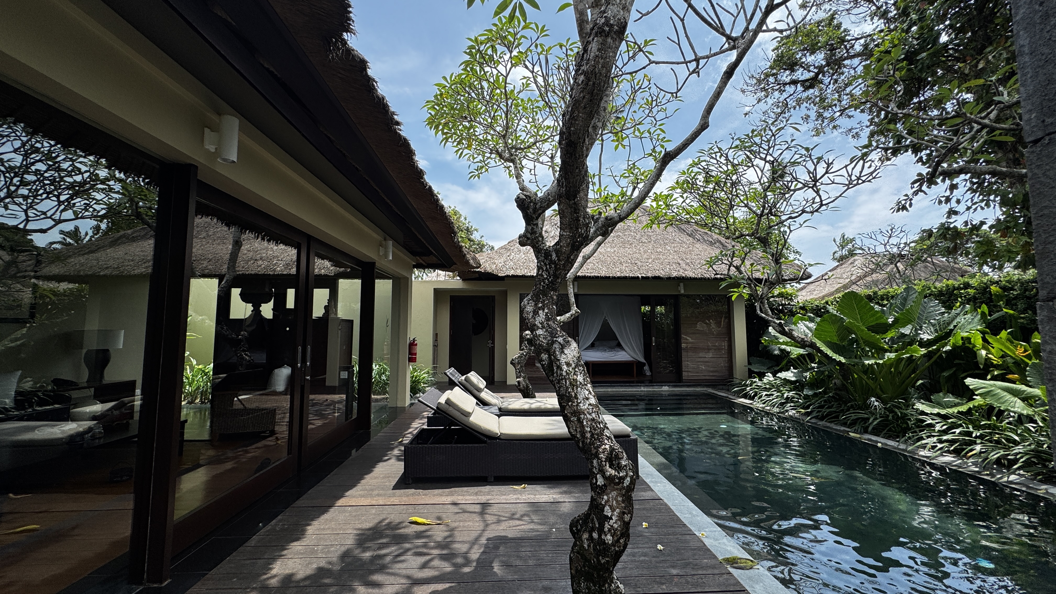 朝起きて大きな窓を開けると、プライベートプールが目の前で贅沢な気分で一日を始められます。