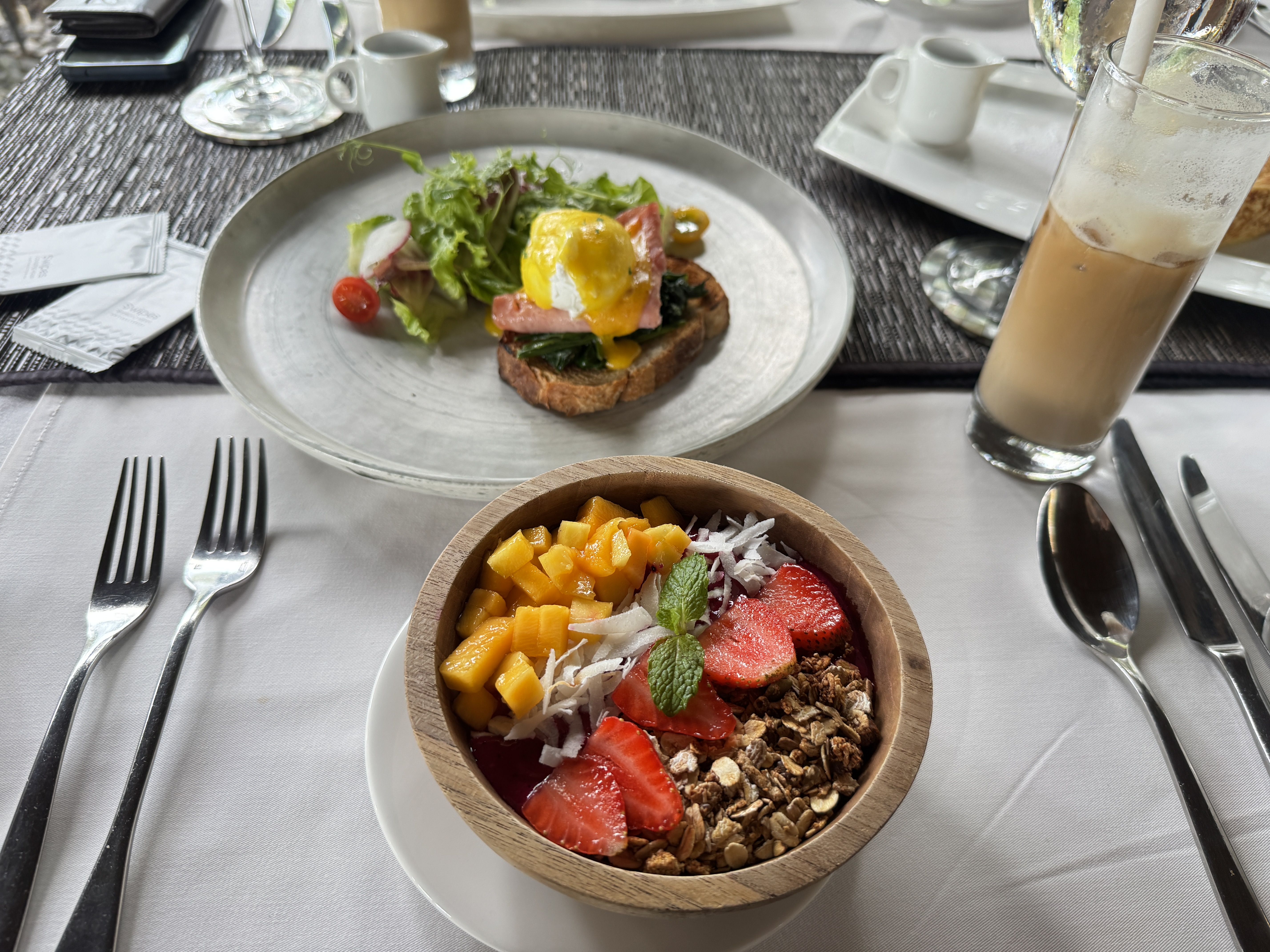 トロピカルバリボウル、エッグベネディクトをいただきました。