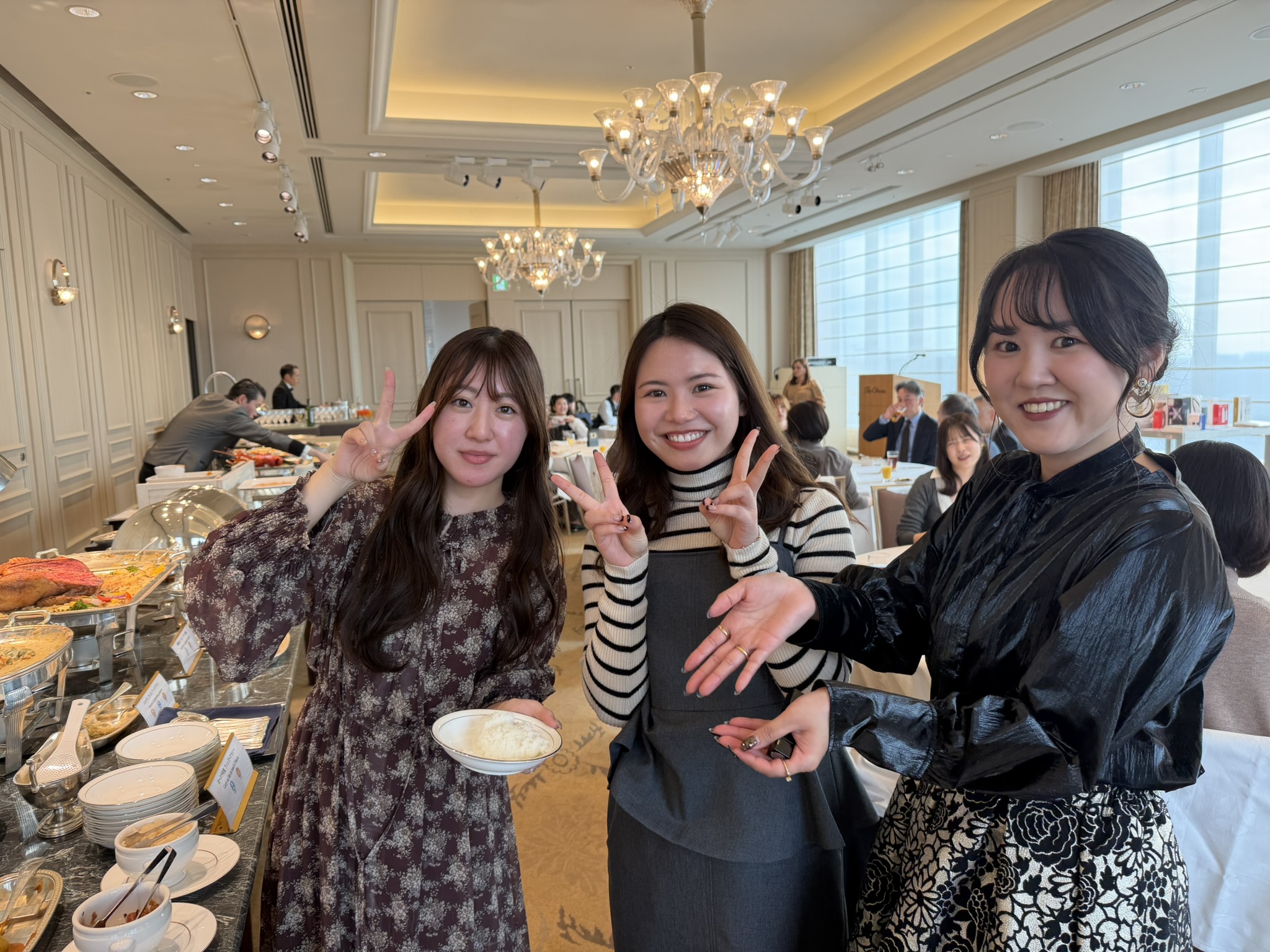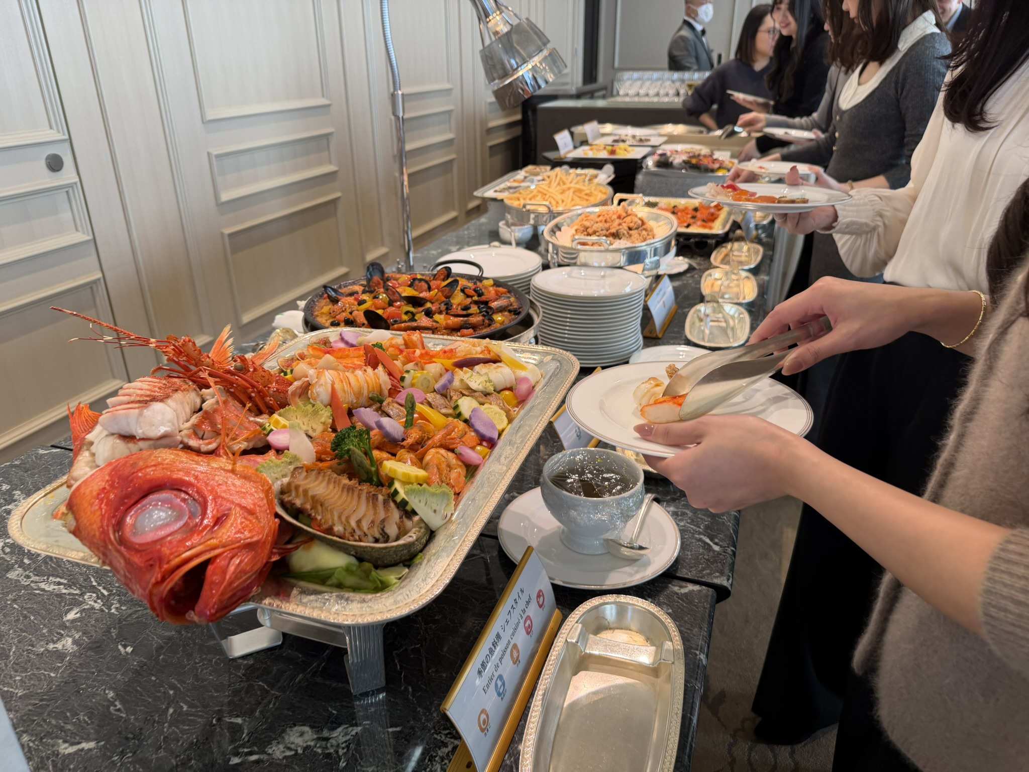 乾杯後は同じテーブルの皆と話しながら料理を取りに行きます。