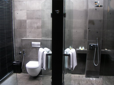 | シンプルでモダンな使い勝手の良さそうなバスルーム。 |