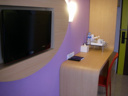 足元には他のカテゴリーと同じくTVと簡易デスク。でも外光が差し込むので、だいぶ印象が変わりますね。 |