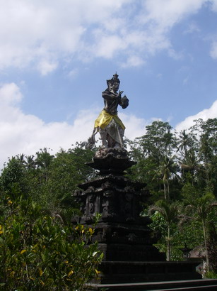 バリの祭礼や満月、新月の日には体を清めに来るヒンドゥー教徒でごった返す沐浴場。 普段の日にはサロンに身を包み、見よう見まねで沐浴を試す外国人ツーリストの姿もありました。 |