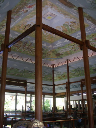 | 天井を見上げるとバリの日常が描かれた 圧巻の絵画が一面に。 |