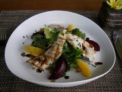 こちらはセットメニュー2の前菜、ウォームベイビーチキンサラダ。
