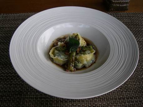 こちらは前菜の2つ目、大きめのラビオリの中にリコッタとほうれん草が入ったアグノロッティ。