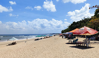 空港から車で約25分、クタの西隣の落ち着いたエリア。レストランやショップが多く、手頃なホテルも揃い、にぎやか過ぎずバリを楽しみたい人向け。サーフポイントも豊富で混雑を避けたいサーファーに人気。ビーチではサンセットも堪能でき、ビーチ前ホテルでのんびり過ごせます。